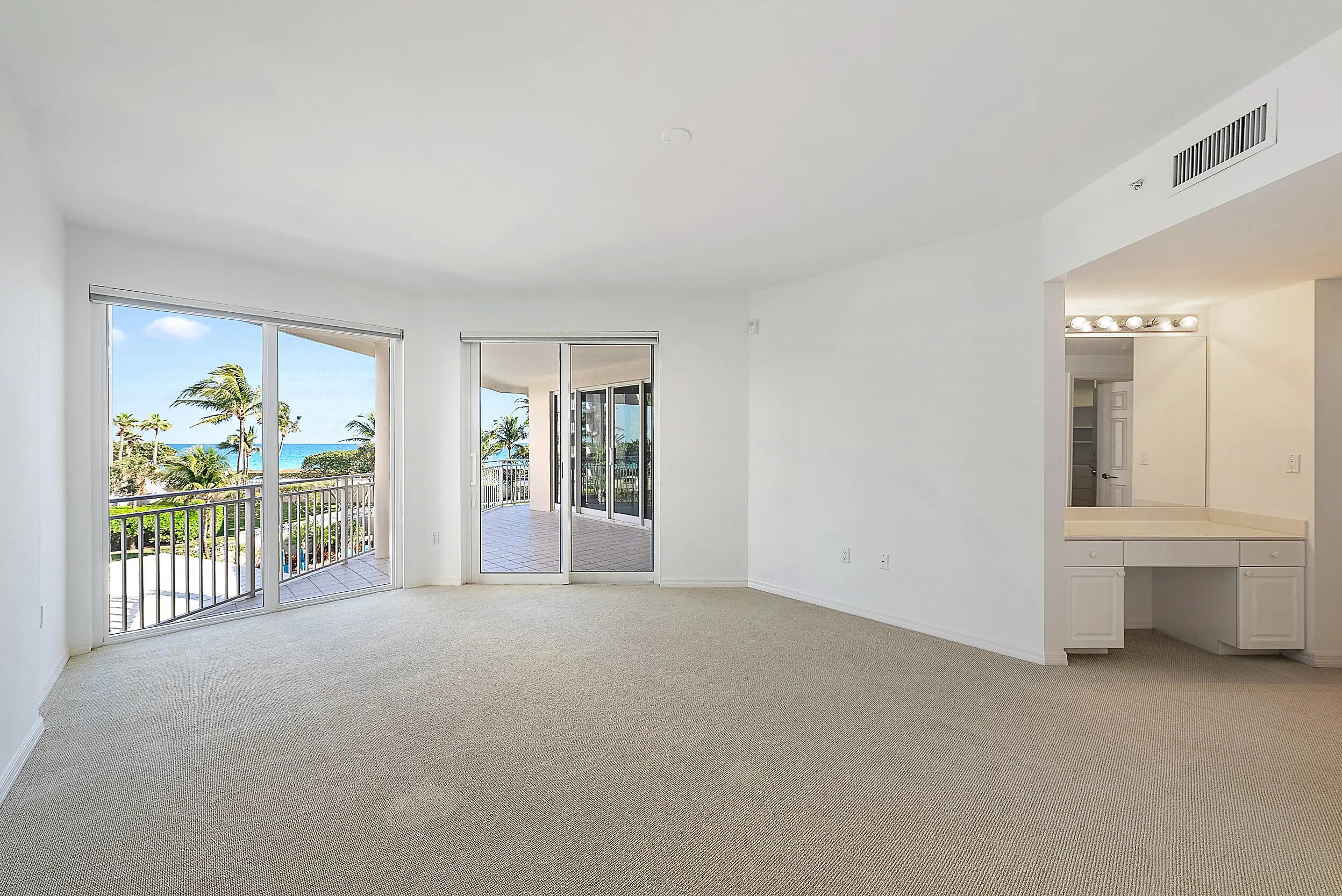 Life is grand at Jupiter By The Sea - from the moment you enter this light, bright and airy condo you will be enthralled with the breathtaking views of the turquoise blue water of the Atlantic Ocean. You are steps from putting your toes in the sand and enjoying all that Jupiter beaches have to offer. This is a full front to back wrap unit with sunrises and sunsets, 500' of expansive balconies and new impact windows and doors that makes this condo light and bright from every room. The Primary Bedroom having a panoramic ocean view, large walk-in closet, sliding doors to balcony and luxurious bath. 2 additional guest rooms within the main living area and a RARE bonus room on a lower floor.