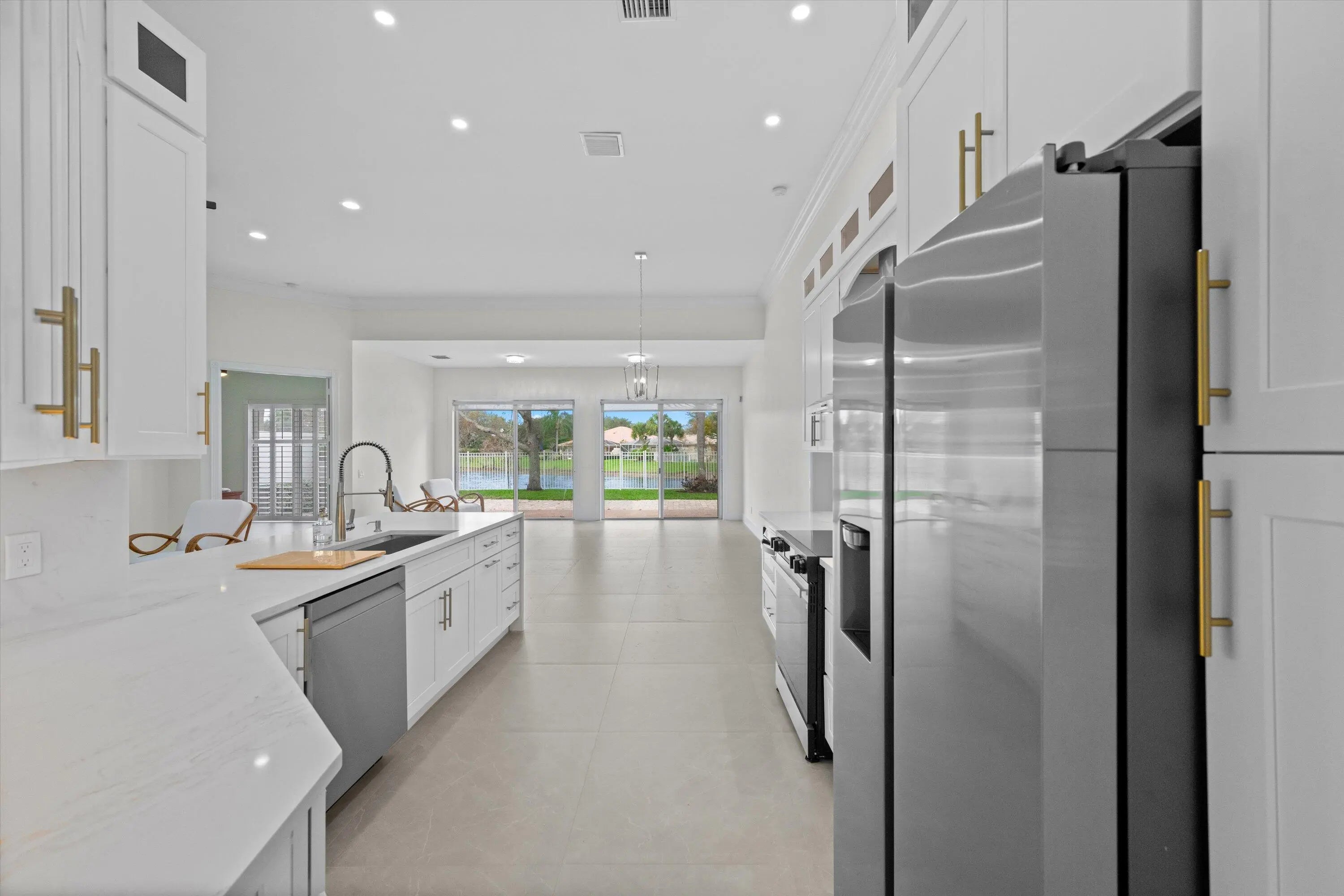 Beautiful Carly model situated on an oversized lot, offering 5 bedrooms and 3 full baths. This exceptional home features fully renovated bathrooms, a designer kitchen with updated appliances, and sleek porcelain flooring throughout. The garage is finished with epoxy flooring, and the property has been freshly painted inside and out. Complete impact glass windows provide elegance, security, and peace of mind.