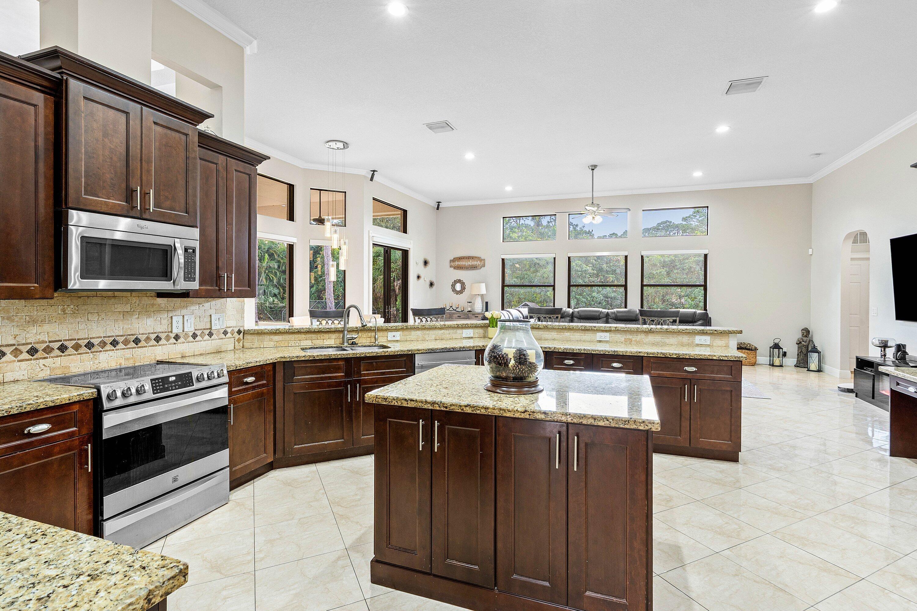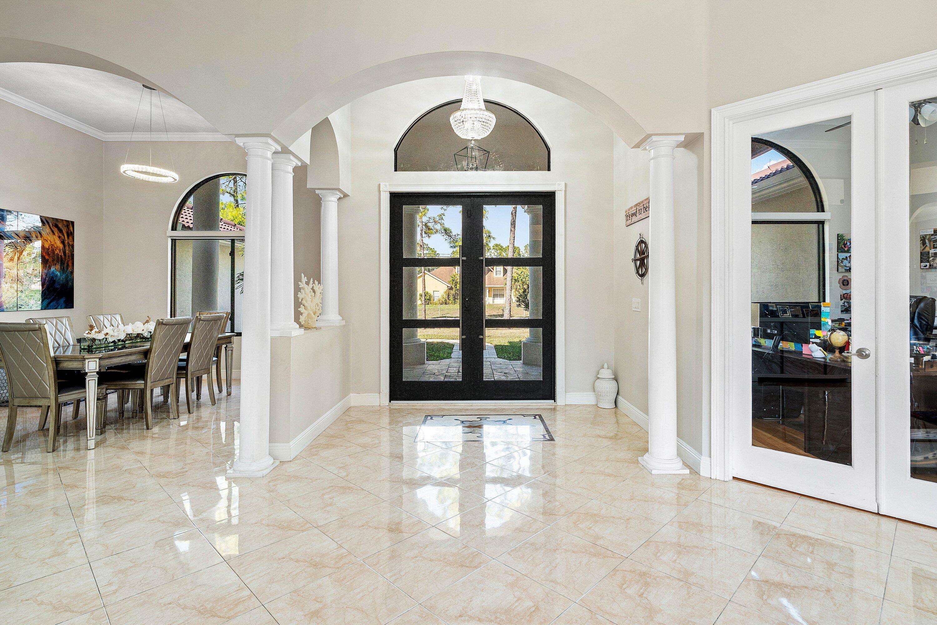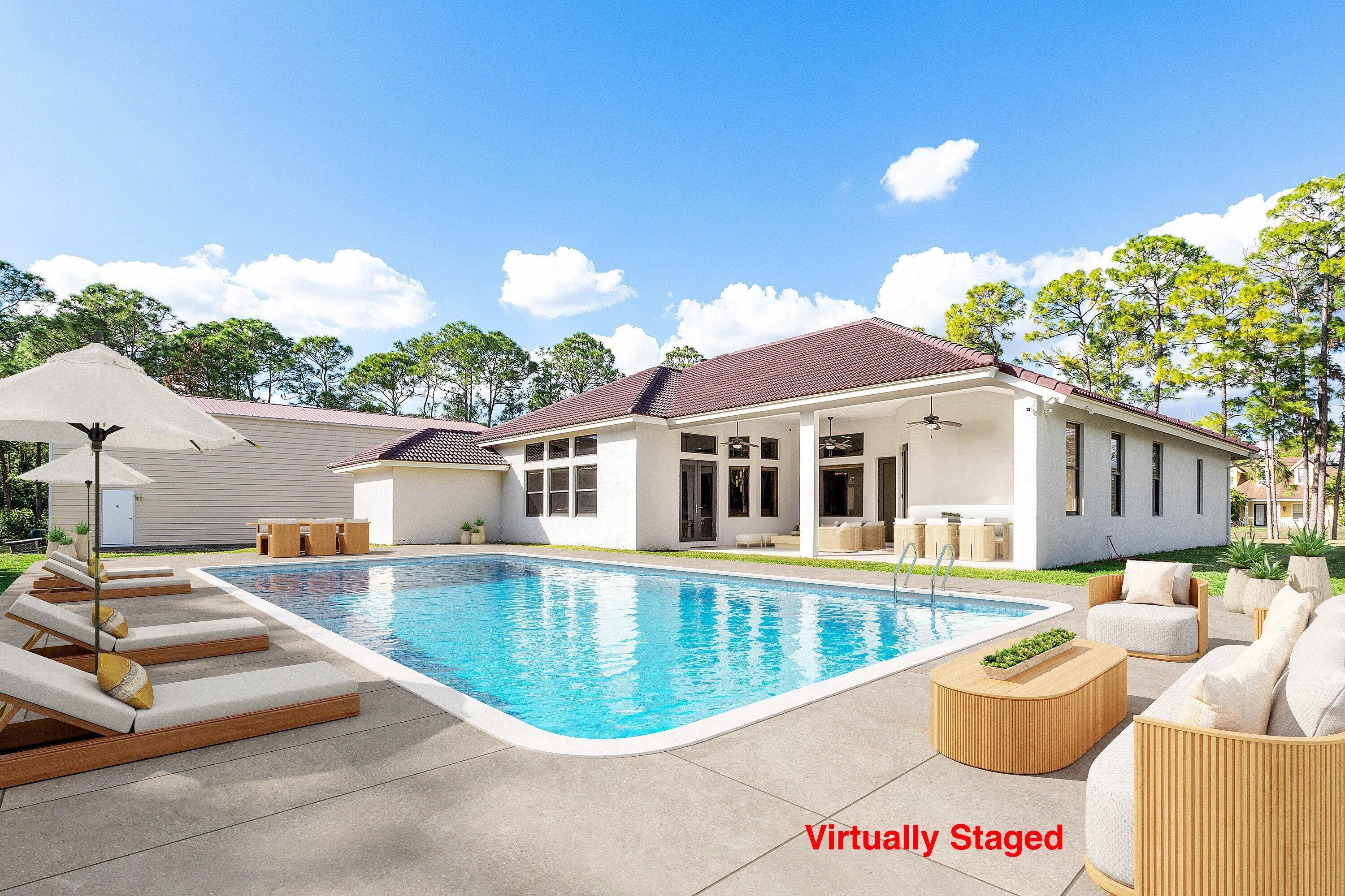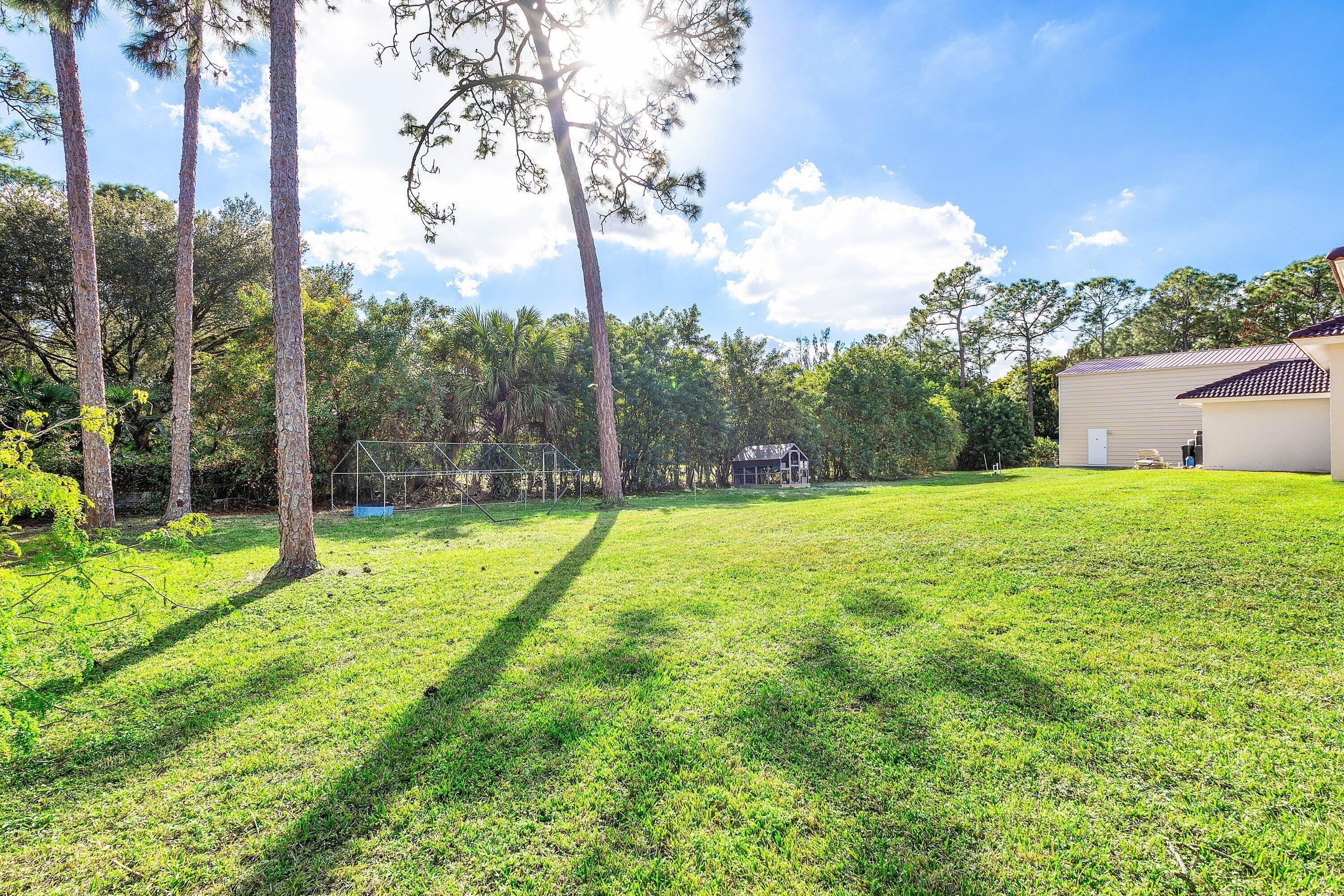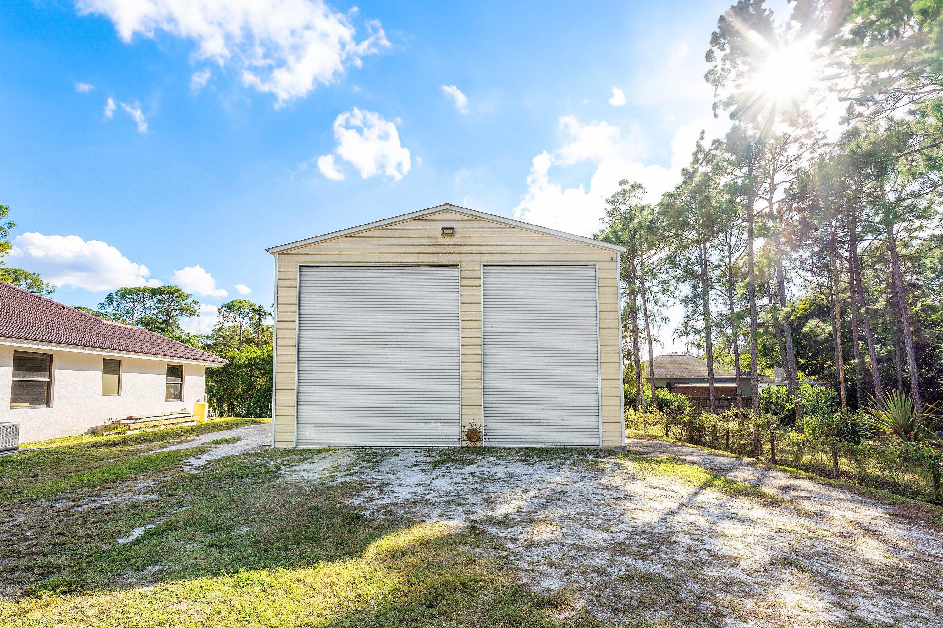 WELCOME HOME This well appointed rare gem is resting on a premium 1.14 acre lot and boasting; 4 bedrooms PLUS DEN, 3 full baths, 1/2 bath, 2 car attached garage, PLUS A SPECTACULAR 60'X30' / 1800 SQFT DETACHED STEEL SHOP, upgrades galore, hurricane impact windows and doors and this estate home is located in a peaceful location! ENTERING the property you will discover that this beauty is resting on a high and dry lot with no pond, expansive concrete driveway and a grand covered entry that brings you inside the double front doors where you are greeted by 12' ceilings, 10'x8' foyer, vertically laid porcelain flooring, arched windows and a hello spacious kitchen that features; kitchen island with storage, 8'x4' walk-in pantry, glass panel display cabinets, stainless steel appliance (CLICK)package, sink reverse osmosis system, bullnose granite countertops, 6 person bar, lovely breakfast nook with a picture window that overlooks the abundant green space. PASSING THROUGH you will find a dynamite split floor plan, this gem is very well maintained, high-end flat wall finish and extensive millwork, columns and arches, french doors, luxurious fixtures throughout, light and bright rooms, beautiful color palette, windows galore including countless transom windows, real wood floors, en-suite bedroom with walk-in closet, double tray ceilings, 12'x9' under AC laundry room with front loading washer and dryer, cabinetry, folding counter, utility sink, tankless hot water heater and much more! And hello elegant master suite boasting a green space view, his and hers walk-in closets, exclusive AC system, private water closet, spacious walk-in shower, his and hers granite vanities, linen closet and grand jacuzzi tub. STEPPING OUTSIDE brings you into a private oasis... Spacious 34'' x 16' lanai that is plumbed for an outdoor kitchen, countless mature pine trees, triple Christmas palms, convenient full concrete areas and simply, a perfect space for quiet time, cozy fires, family gatherings, entertaining and enjoying Florida living at its best. HELLO SHOP, SAVINGS, PEACE OF MIND: 1800 sqft Eversafe 2021 shop boasting a 21' ceiling, 14' front roll up doors, rear rollup door, 200 amp service with multiple 220 and 110 outlets, and Eversafe Buildings has over 40 years' experience in providing high quality metal buildings and only uses the finest materials on the market. Their buildings are made with 100% American commercial grade steel and they have an outstanding reputation for superior quality, durability and strength. And you can have peace of mind from their A+ rating with the BBB and with the knowledge that your personal property is protected and safe in an Eversafe structure that was engineered to meet Florida's building department requirements and can withstand the worst climatic conditions. And generator hook up, newer water system, state-of-the-art home and shop Lorex alarm system equipped with 10+ cameras, audio, sensors, motion lighting, Ring system and much more! LOCATION LOCATION LOCATION Loxahatchee/The Acreage is located in Palm Beach County, which is home to one of Florida's best public school systems and some of the country's most rigorous public magnet and private schools in the nation as recognized by U.S. New & World Report, the New York Times and sitting just a few miles away from the Palm Beach State College. And from your own yard residents can enjoy year-around farm-to-table living, taking classes in the community and learning about the full spectrum of food production and healthy eating. Along with, this gem is just minutes to everything one could possibly desire; shopping and dining just around the corner and nine quaint parks with countless year-round outdoor activities such as; free concerts at the community amphitheater, play grounds and picnic areas with grill pavilions, fishing, skate and equestrian parks, fitness and equestrian trails, football, baseball and soccer fields, tennis, basketball, volleyball and racquetball courts and is located just minutes to everything one could possibly desire; Florida's Turnpike, I-95, Palm Beach international Airport, arts, entertainment, world class equestrian shows and facilities, beaches, theater, golf, business and economic development, education, green living and countless activities for all ages, Simply, the best of everything and your perfect Florida retreat. COME AND SEE WHY The Acreage is so sought after and take in the fresh country air and peaceful sounds of nature. Build a pool, guest house, kids play house, garden and bring your toys, pets or just about anything your heart desires... The possibilities are endless and there is no HOA! Come and enjoy your life away from the hustle and bustle and your evenings gazing at the stars.