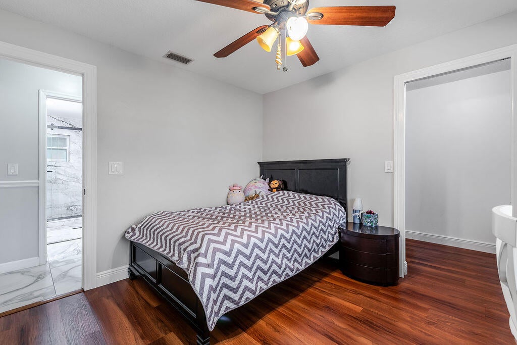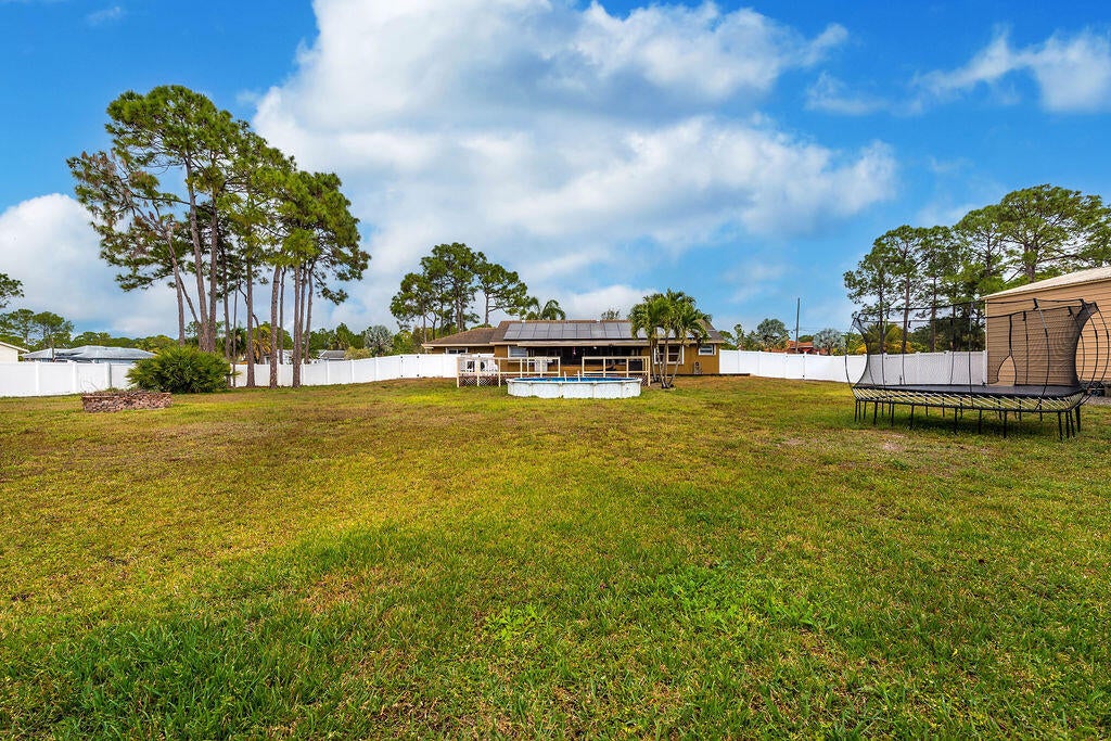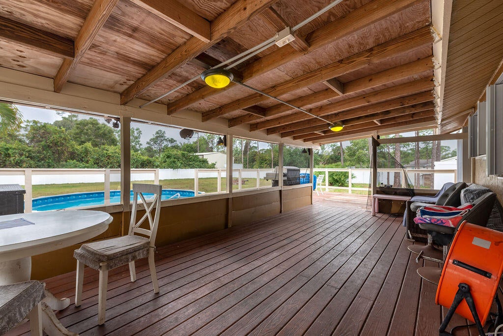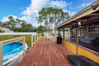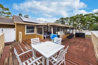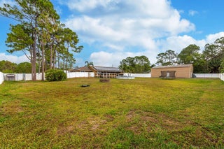 Welcome to a true Florida lifestyle property on 1.15 acres, fully fenced with NO HOA. Zoned Agricultural-Residential, allowing horses, livestock, agricultural use, workshops, and storage of RVs, boats, trailers, and equipment - perfect for anyone wanting space without restrictions. The main house offers 3 BR / 2 BA with newly renovated baths, updated flooring, and a bright, functional layout. Enjoy a huge covered back patio and oversized L-shaped open deck. A separate guest house features 1 BR / 1 BA and kitchen-ideal for income potential or multigenerational living. The property also includes a 40' x 50' detached metal building / hangar with electric and roll-up doors, plus a massive driveway for RVs, boats, trailers. Well water, septic tank, and solar panels offer off-grid efficiency.