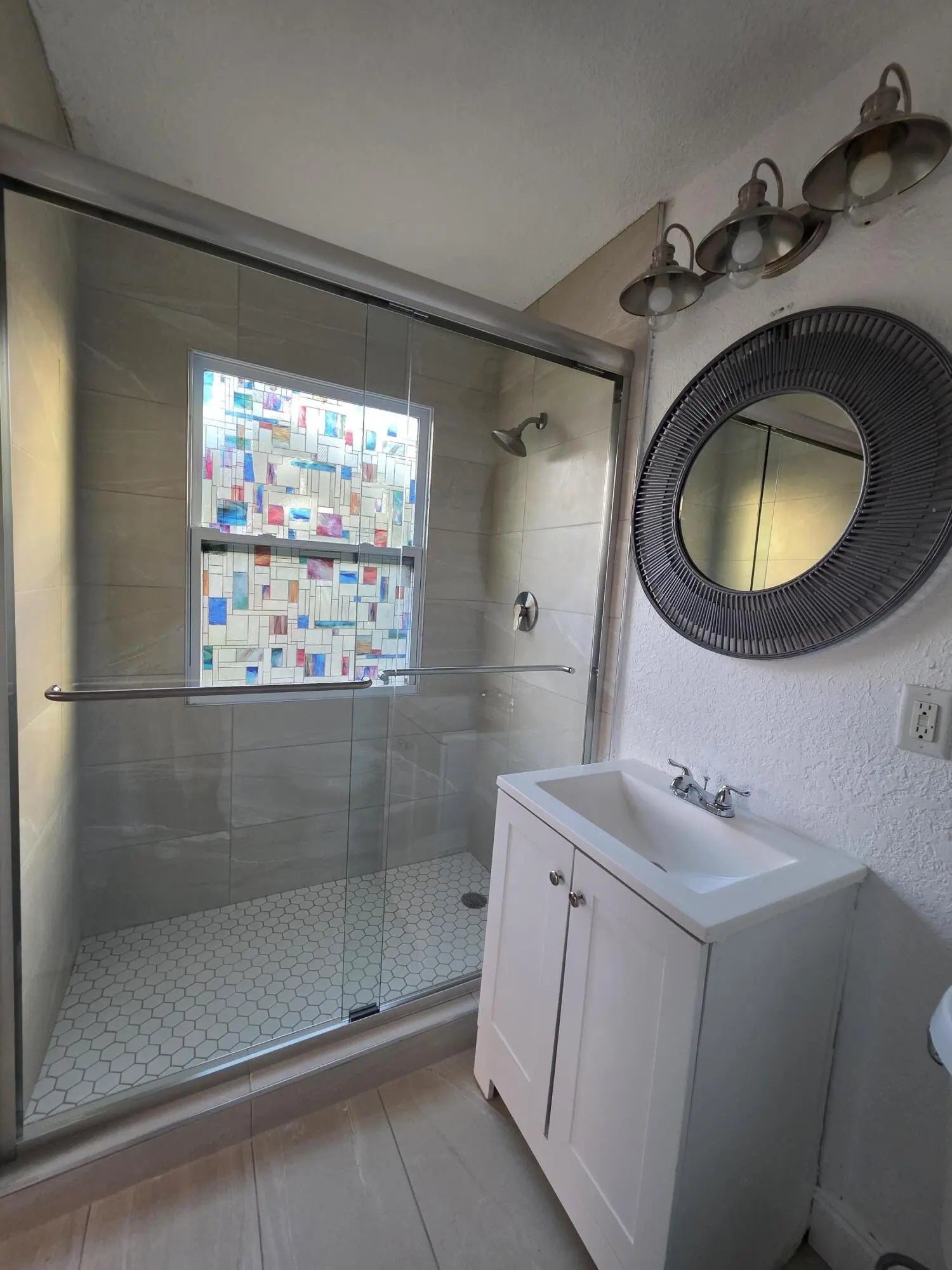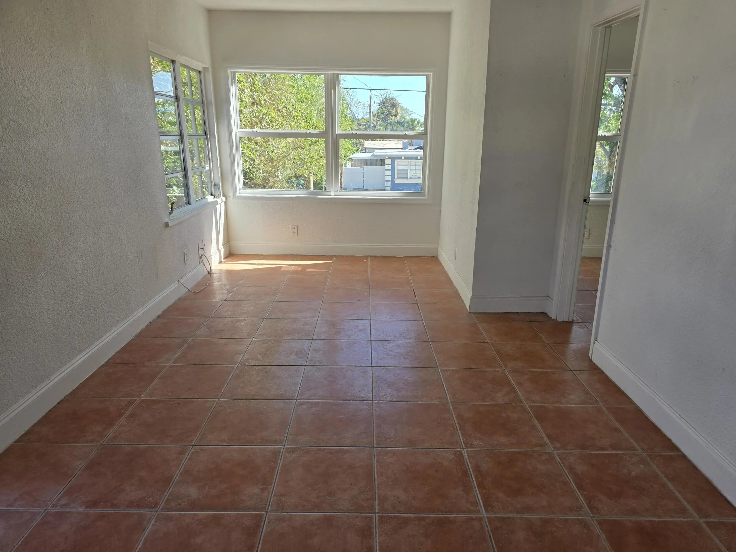 Carriage House. Brand new shower with shower door and tile floor. Saltillo tile throughout the Carriage House. New Split AC system in Bedroom. Another newer Split AC system in the Living Rm. Newer Washer and Dryer and large garage and storage. Driveway parking on the right side for up to 2 vehicles.Move in 1st months rent, 1 month security, last months rent plus $49 for water.