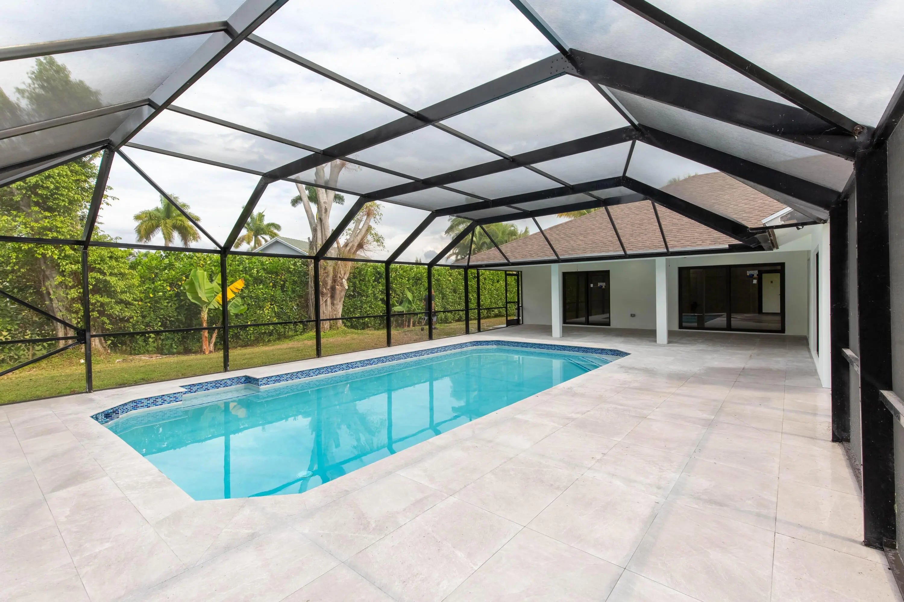 Modern luxury in the heart of Wellington. Large 1/2 acre lot with plenty of beautiful palm trees. Completely rebuilt in 2025 with new roof, new impact windows and doors, new designer kitchen & bathrooms. Screened in swimming pool with new diamond brite & outdoor shower as well as custom stone pool deck. Large covered loggia with room for outdoor kitchen. Built in closets throughout. All new appliances including laundry set. Modern landscaping provides great curb appeal. Must see!