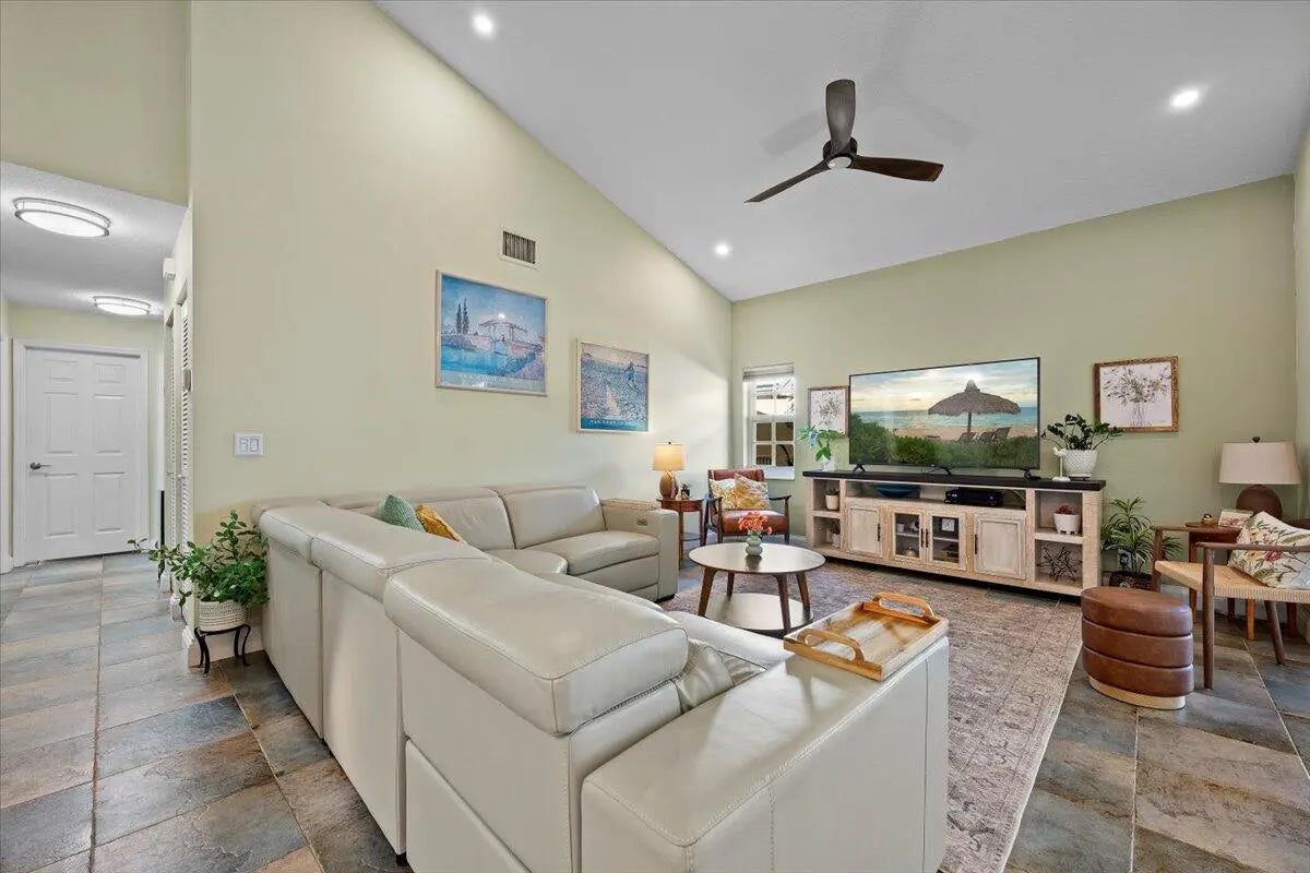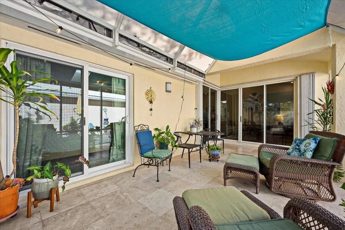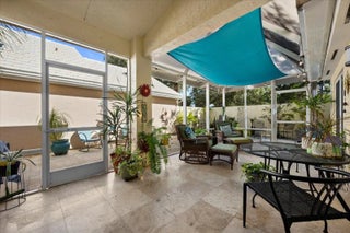 Pristinely maintained PGA national single family home in Barclay club. Featuring quartzite kitchen counters, stainless appliances, new air conditioner, travertine patio pavers and impact glass windows and accordion protection for the sliders. The screened patio also features a sun shade and retractable awning for year round enjoyment. Turf yard, epoxy garage floors and plantation shutters make this home move in ready.