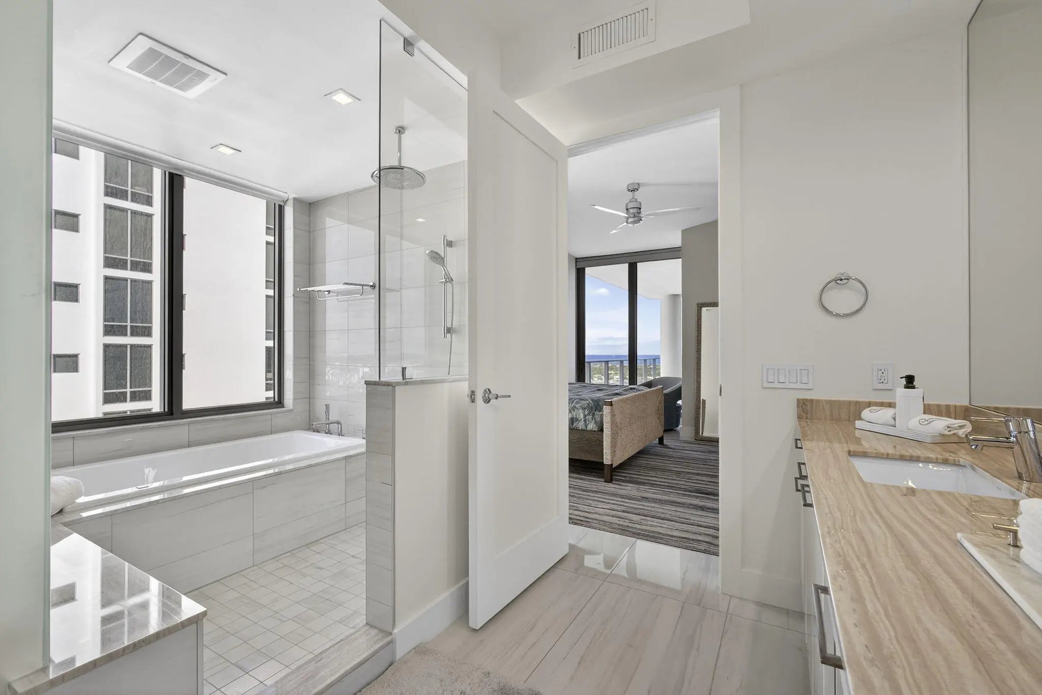Experience elevated coastal living in this spectacular waterfront residence in the exclusive Encore stack of Water Club Tower III. This boutique luxury tower offers only two residences per floor, each with a private elevator vestibule. The three-bedroom, 3.5-bath home features breathtaking sunrise views from an expansive east-facing balcony overlooking the waterway and Atlantic Ocean. Sold vacant, this barely used residence showcases elegant finishes, motorized electrical shades, and custom built-in closets. Included are two prime parking spaces and a spacious double storage locker. Residents enjoy world-class amenities including three resort-style pools with cabanas, two fitness centers, two club rooms, and a pickleball court--an exceptional opportunity in a coveted luxury community.