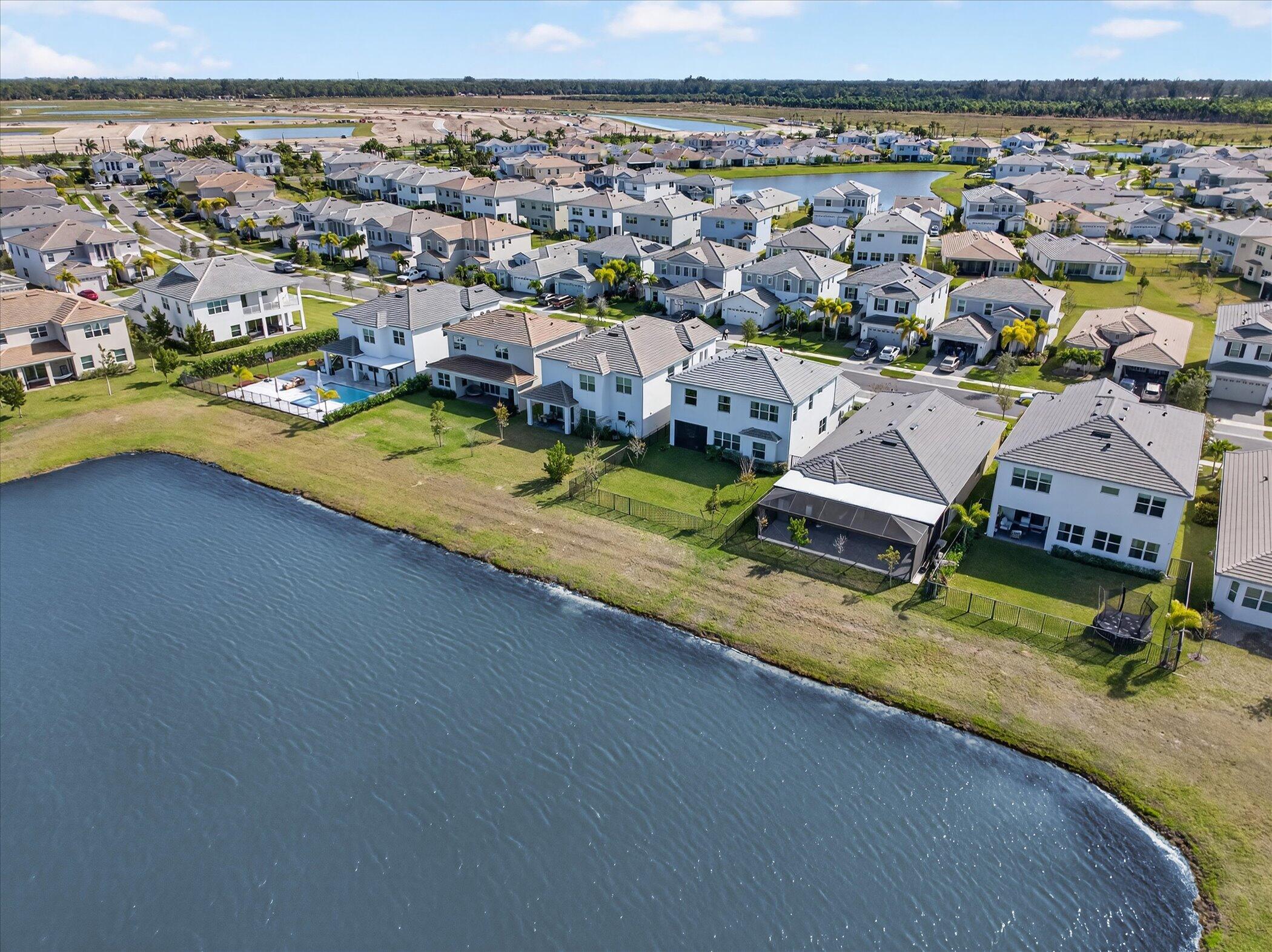 Welcome to this newer construction (2023) beautifully upgraded 3-bedroom, 3-bath waterfront home in Loxahatchee offering 2,306 SF of adjusted living area (per floor plan). This thoughtfully designed residence features an open-concept layout with abundant natural light and direct water views from the main living areas, kitchen, screened patio, and primary suite. The modern kitchen offers ample cabinetry and counter space and flows seamlessly into the living and dining areas, ideal for everyday living and entertaining. Over $50,000 in upgrades include a full screened patio and extended covered loggia, creating exceptional indoor-outdoor living overlooking the water. Move-in ready and conveniently located near shopping, dining, schools, and major roadways.