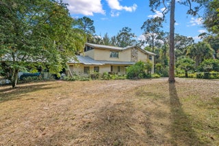 Welcome to a truly one-of-a-kind retreat in the heart of Loxahatchee Groves. Situated on a beautifully treed, private 5+ acre lot, this distinctive home offers the perfect blend of rustic charm, natural surroundings, and peaceful country living just minutes from modern conveniences. The home features soaring vaulted ceilings, rich wood accents, and expansive windows that flood the home with natural light while framing serene views of the surrounding landscape. A dramatic stone fireplace anchors the living space, creating a warm and inviting atmosphere ideal for gatherings or quiet evenings at home. Unique architectural details throughout reflect timeless craftsmanship and character rarely found in today's construction. The spacious kitchen offers ample cabinetry and counter space,perfect for everyday living or entertaining, while maintaining the home's authentic, country-inspired aesthetic. Multiple living and dining areas provide flexibility for entertaining, relaxing, or working from home. The primary suite is a tranquil escape, featuring vaulted ceilings, natural light, and peaceful views of the property. Additional bedrooms and living spaces offer comfort and versatility for family, guests, or multigenerational living. Outside, the expansive grounds provide endless possibilitiesroom for horses, gardens, workshops, or future expansion. Mature trees and lush vegetation offer privacy and shade, embracing the Old Florida lifestyle Loxahatchee Groves is known for. With no HOA restrictions, enjoy the freedom to live, work, and play your way. Conveniently located near Wellington, shopping, dining, top equestrian venues, and major roadways, this property delivers the rare opportunity to enjoy country living without sacrificing accessibility. This is more than a homeit's a lifestyle.