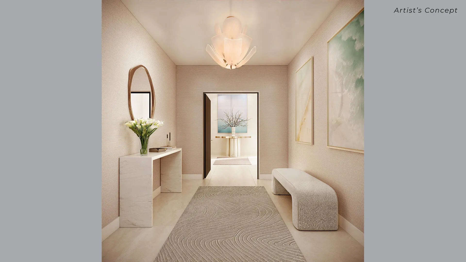 An extraordinary penthouse defined by the prestige, service, and lifestyle of The Ritz-Carlton - The Estate Collection. Offering three bedrooms plus a private office/den and three-and-a-half baths, this residence features approximately 3,455 SF of expansive living spaces with floor-to-ceiling windows that extend seamlessly to a 745 SF private terrace with sweeping Intracoastal views. The kitchen features European oak-finish cabinetry, Wolf and Sub-Zero appliances, wine storage, and oversized island. The primary suite is a serene retreat with dual walk-in closets and luxury bath. Residents enjoy a private, residential-only building enhanced by over 20k square feet of resort-style amenities and the legendary service standards synonymous with The Ritz-Carlton. Estimated completion mid 2026.