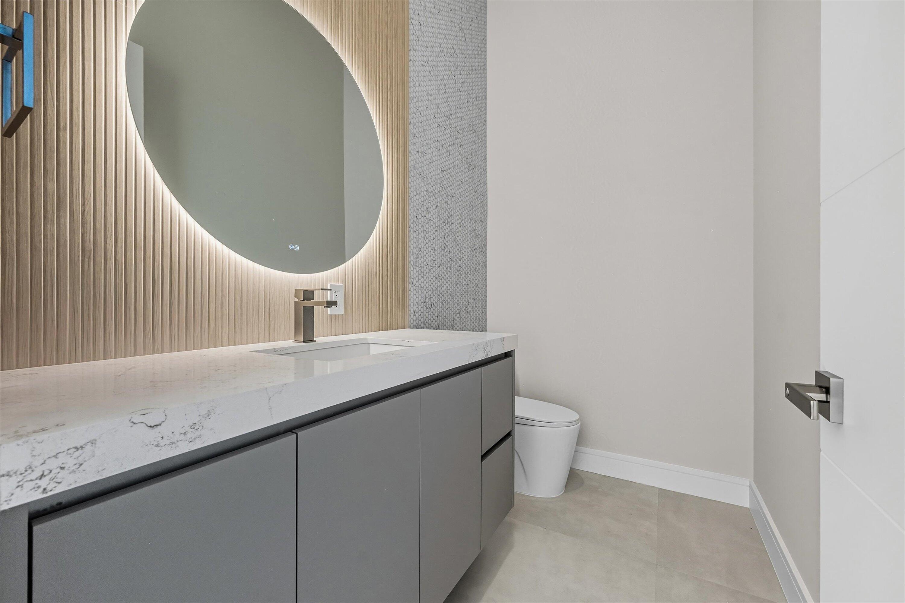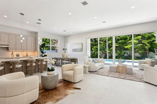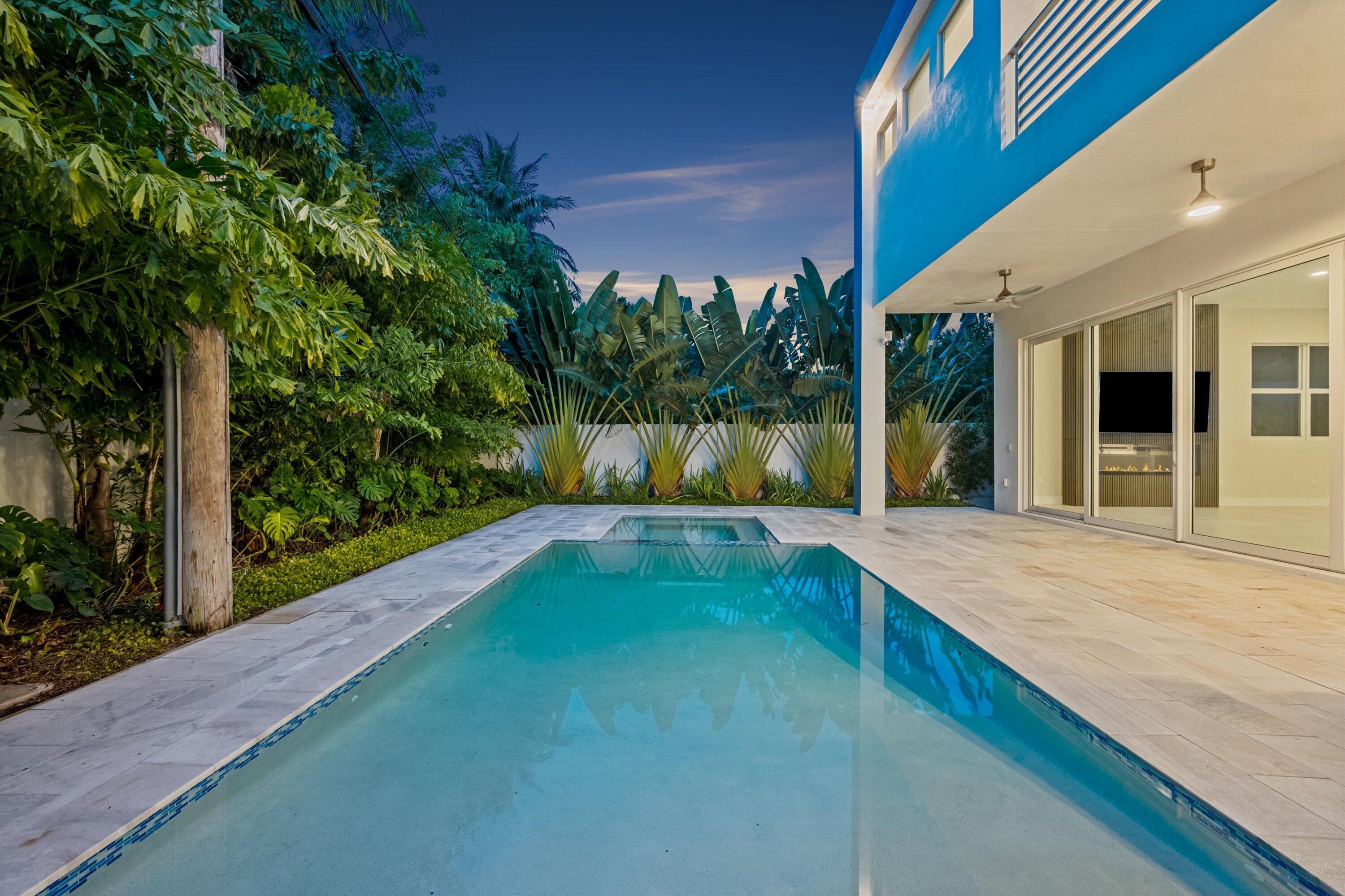 Newly built coastal contemporary residence in the heart of East Delray Beach. Just a short walk to the beach and minutes from vibrant Atlantic Avenue. Part of a neighborhood undergoing a complete transformation with brand-new multimillion-dollar homes, this property blends modern design, sustainable living, and resort-style amenities.With 3,800 square feet of living space and over 4,600 total square feet, the home offers soaring 12-foot ceilings on the main level and 10-foot ceilings upstairs, creating an airy and open atmosphere.The chef's kitchen is a true showpiece with a dramatic waterfall quartz island, high-end appliances, and custom cabinetry. A seamless integration of whole-home smart technology allows effortless control of lighting, climate, security, and entertainment. Additional features include built-in speakers throughout, a sleek contemporary fireplace, and a dedicated office plus upstairs loft area. The primary suite is a luxurious retreat with a spa-inspired bath featuring a custom shower, freestanding tub, and expansive built-in closet. Outside, the private backyard awaits with a heated saltwater pool and spa, lush landscaping, and a spacious covered patio with built in BBQ/Bar. Practical and eco-conscious details set this home apart: a solar-subsidized power system with capacity for expansion, an electric vehicle charging station, and full RV amenities including a dedicated parking pad with electrical hookup and sewer connection. The grand marble driveway and epoxy-finished garage complete the package. The information published and provided including but not limited to prices, measurements, square footages, lot sizes, features, finishes, and calculations are subject to errors, omissions or changes without notice. All such information should be independently verified. All parties should perform their own due diligence to verify all information.