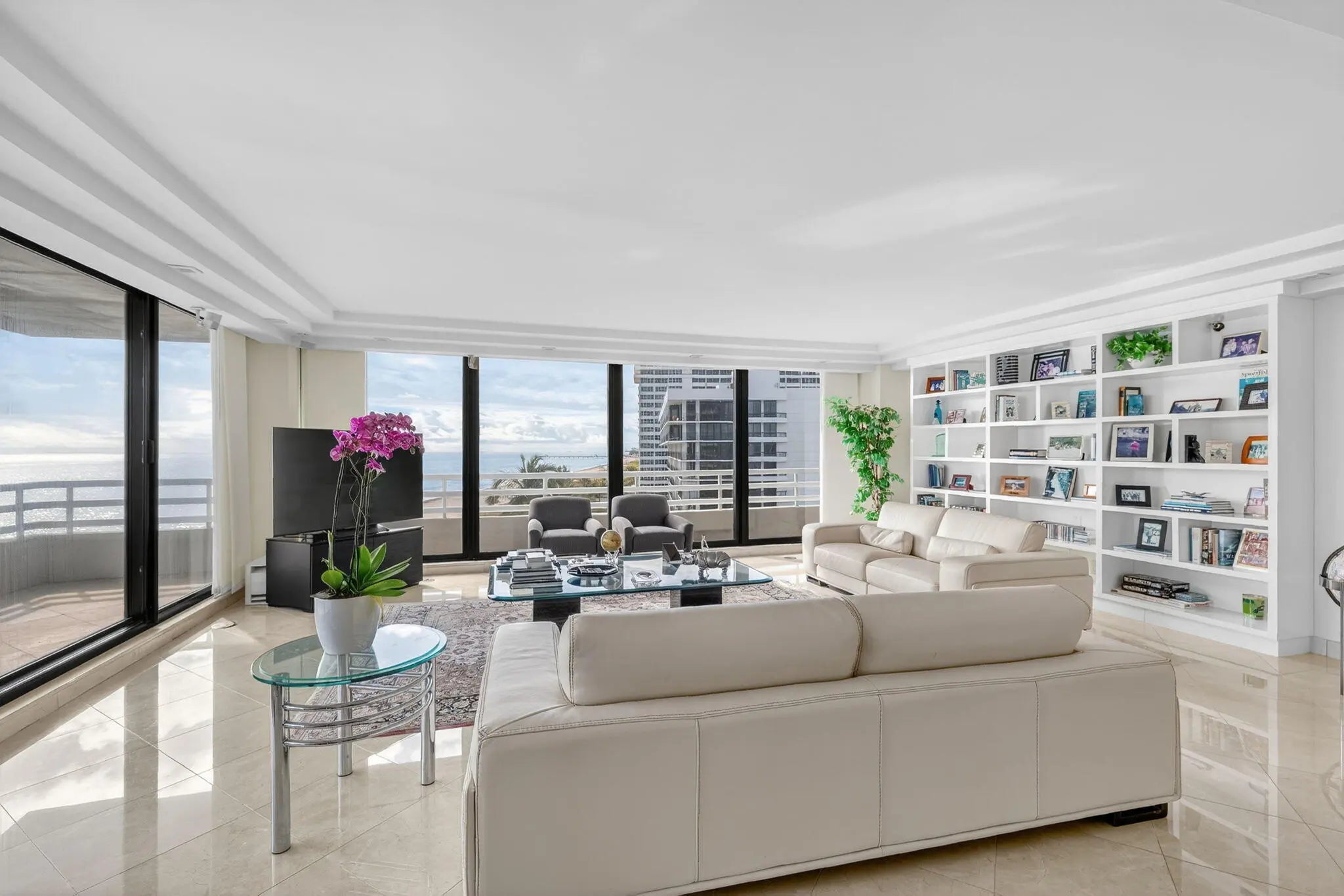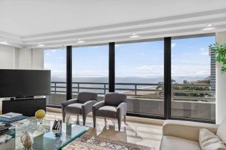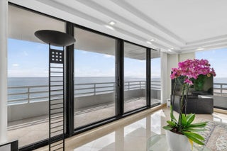 S-606 is a RARELY AVAILABLE wrap-around corner residence on the south side of the south tower. The panoramic ocean views are striking from the moment you enter this unit. Upon entering you're welcomed by the sparkling ocean, marble floors w/ custom inlays & open concept living. The kitchen features custom cabinetry & lighting & an oversized cooktop island w/ designer glass details & seating. The generous primary suite features plush carpet, remote controlled black-out shades, marble detailed bath, walk-in closet & magnificent ocean & city views. The 2 guest suites include beautiful ensuite baths & balconies w/ stunning views. Additional features include custom ceilings, updated powder room & impact glass throughout. This is a unique opportunity for a south exposure, oceanfront residence.
