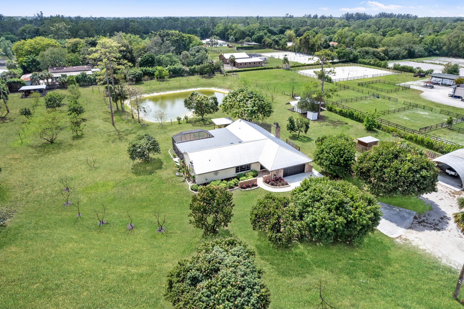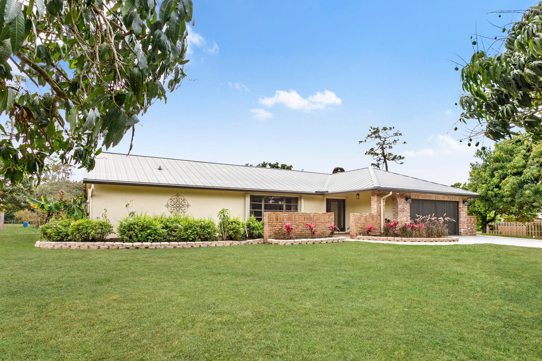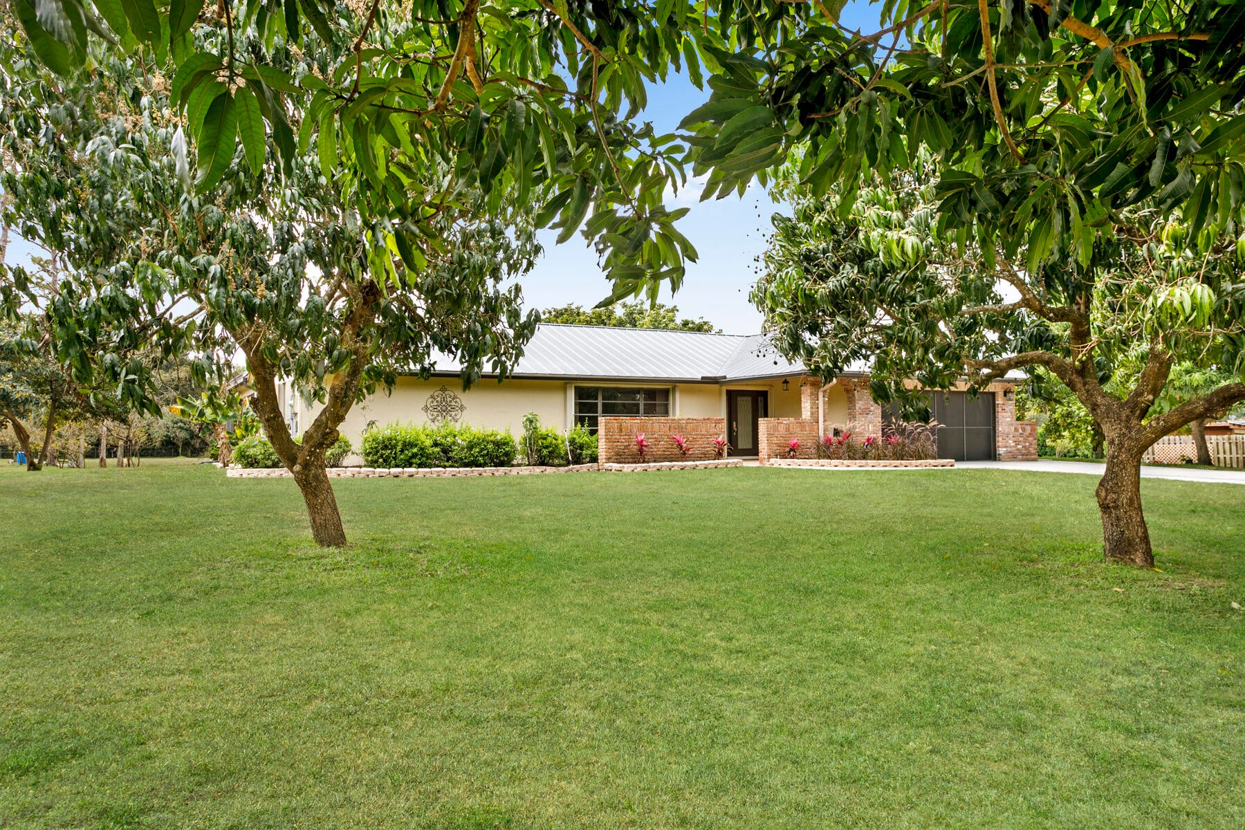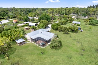 Exceptional Location with Endless Possibilities! Nestled on a picturesque manicured 5-acre parcel, this property boasts two well-maintained single-family homes, offering the perfect blend of serene country living with unparalleled proximity to the city. Ideally situated just minutes from Palm Beach County's most sought-after destinations, you'll enjoy the best of both worlds. Within minutes to Palms West Hospital, Publix, PBI Airport and nearby shopping, and find yourself just a stone's throw from the renowned Polo Grounds and Wellington Green Mall. This rare and unique property is currently operating as a thriving fruit farm, with an impressive array of mature, exotic fruit trees--including Mango, Avocado, Longan, Sugar Apple, Jackfruit, Sapodilla, Mamey Sapote, Dragon Fruit Read MOREThe property is also benefiting from agricultural Orchard Land Use tax exemptions, making it an ideal investment for agricultural enthusiasts or those looking for a private, nature-filled retreat. Both homes feature high-quality standing seam metal roofs, replaced in 2022, while the patio flat roof has been recently redone in 2024. Full 4-point inspection and wind mitigation reports are available for peace of mind. This one-of-a-kind property offers an incredible opportunity to experience a peaceful, rural lifestyle without sacrificing the conveniences of urban living. Don't miss your chance to own this extraordinary piece of land in one of the most coveted locations in the area. Main home: This spacious 3-bedroom, 2-bathroom home boasts 2,244 sq. ft. of living space with a thoughtfully designed split floor plan. Enjoy the expansive 728 sq. ft. covered and screened patio, perfect for entertaining or relaxing, complete with an 8-person hot tub. The property offers breathtaking views of a serene lake, enhanced by a fountain that also serves as an irrigation source. The main home showcases a striking front façade with authentic Old Chicago brick and a cozy wood-burning fireplace. Inside, you'll find laminate and tile flooring throughout, with elegant Margaritelli wood floors in the formal living and dining areas. Triple sliding doors lead out to the rear patio deck from multiple rooms, providing a seamless indoor-outdoor living experience. The master suite features a walk-in, drop-down shower and dual vanities, while the cabana-style hall bathroom adds extra convenience. Additionally, the property is fully equipped with a 20+KW Kubota Diesel Generator, along with a 500-gallon fuel tank, ensuring uninterrupted power to the entire home, including air conditioning. Guest House: The 1-bedroom, 1-bathroom guest home offers 744 sq. ft. of living space and features a spacious bedroom with a walk-in closet, a full-size kitchen, and laundry hookups. A generous great room leads out to a large, partially covered brick paver patio, ideal for enjoying the outdoors. For added convenience, the guest house has a 50-amp RV hookup with gray water setup. Additional Structures & Storage: This property offers exceptional versatility with multiple outbuildings, including: - A detached 40 x 25 Quonset hut, perfect for 4 cars, with a 30-amp RV hookup. - A 30 x 20 workshop with electricity. - Two covered equipment structures (32 x 26 and 32 x 12) for additional storage, workspace or equipment. - Three additional aluminum sheds (18 x 11, 15 x 10, and 8 x 6) to accommodate all your storage needs. Additional Amenities: Both homes are protected by aluminum accordion storm shutters on every window and door, offering added peace of mind during storm season. This remarkable property is truly a one-of-a-kind gem, with way more features than can be listed here! It's an exceptional opportunity that won't last long--schedule your showing today before it's gone!