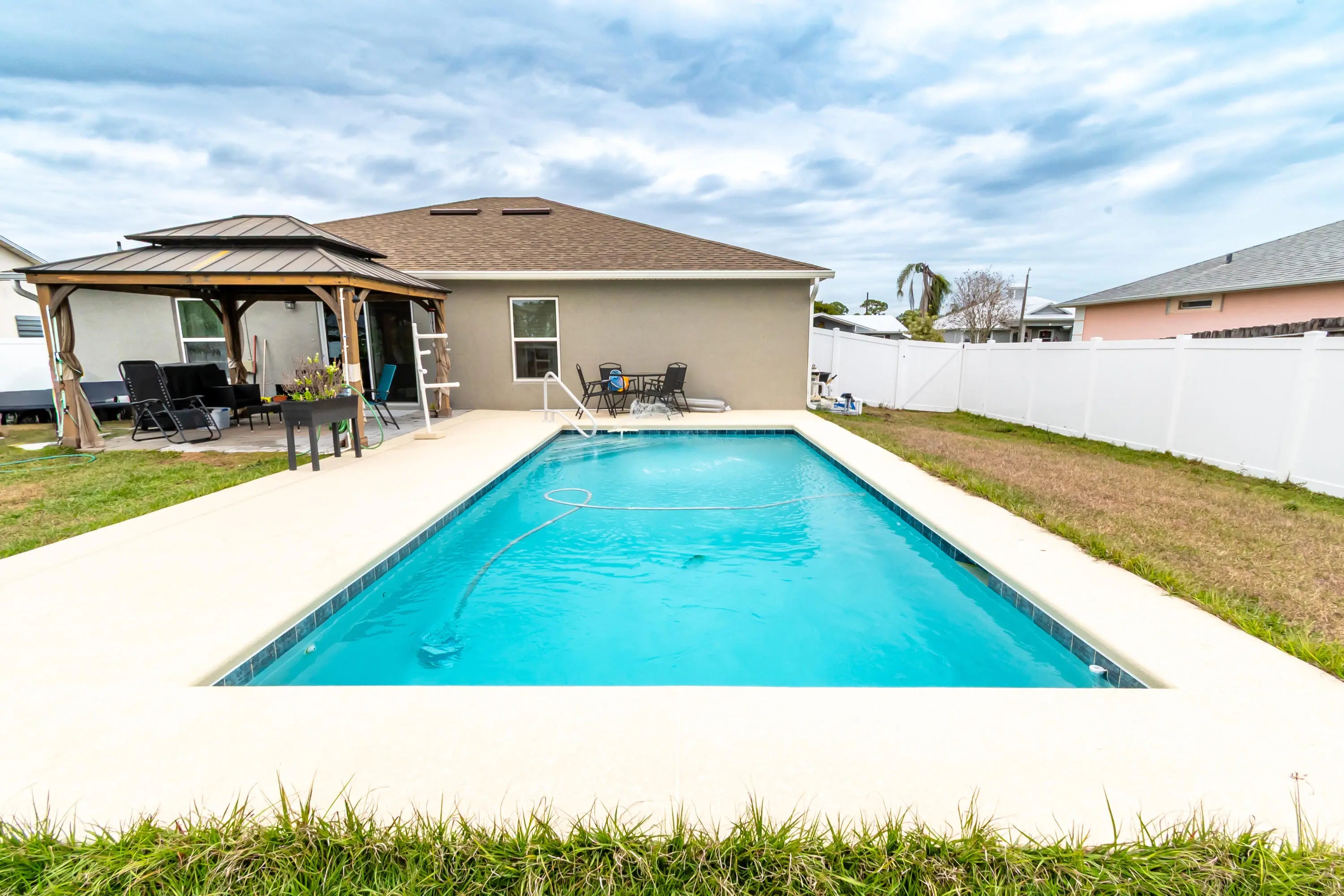 MOVE IN READY POOL HOME! Why wait to build? Enjoy peace of mind in this 2024 Holiday Builders home with a pool, featuring 3 bedrooms, 2 bathrooms, and a 2-car garage with attractive stone accents on the front exterior. The kitchen boasts a stylish backsplash and an open flow and functional layout. Step outside to a 12x24 pool completed in 2025, with a sitting ledge, app-controlled automatic cleaning system, programmed control box, and pool equipment including a pool vacuum. A white vinyl fence (2025) adds privacy. Dont miss your chance to get into a newer home with a pool, this doesn't happen often. Great Location to amenities, restaurants, and the Port District.