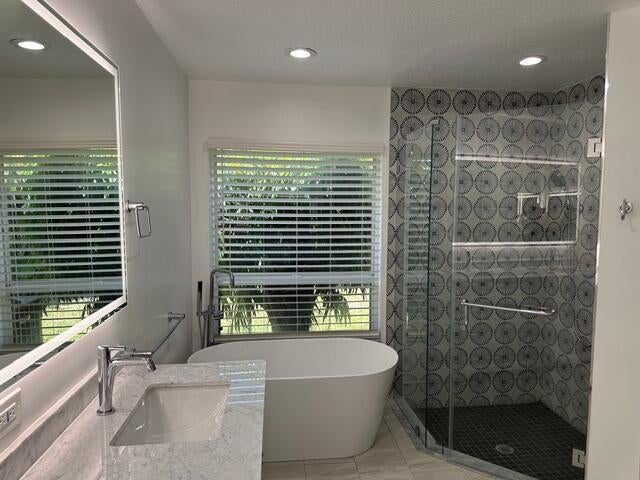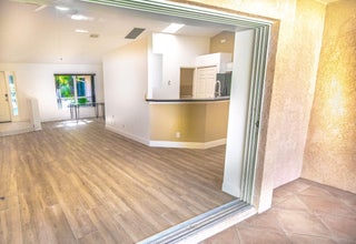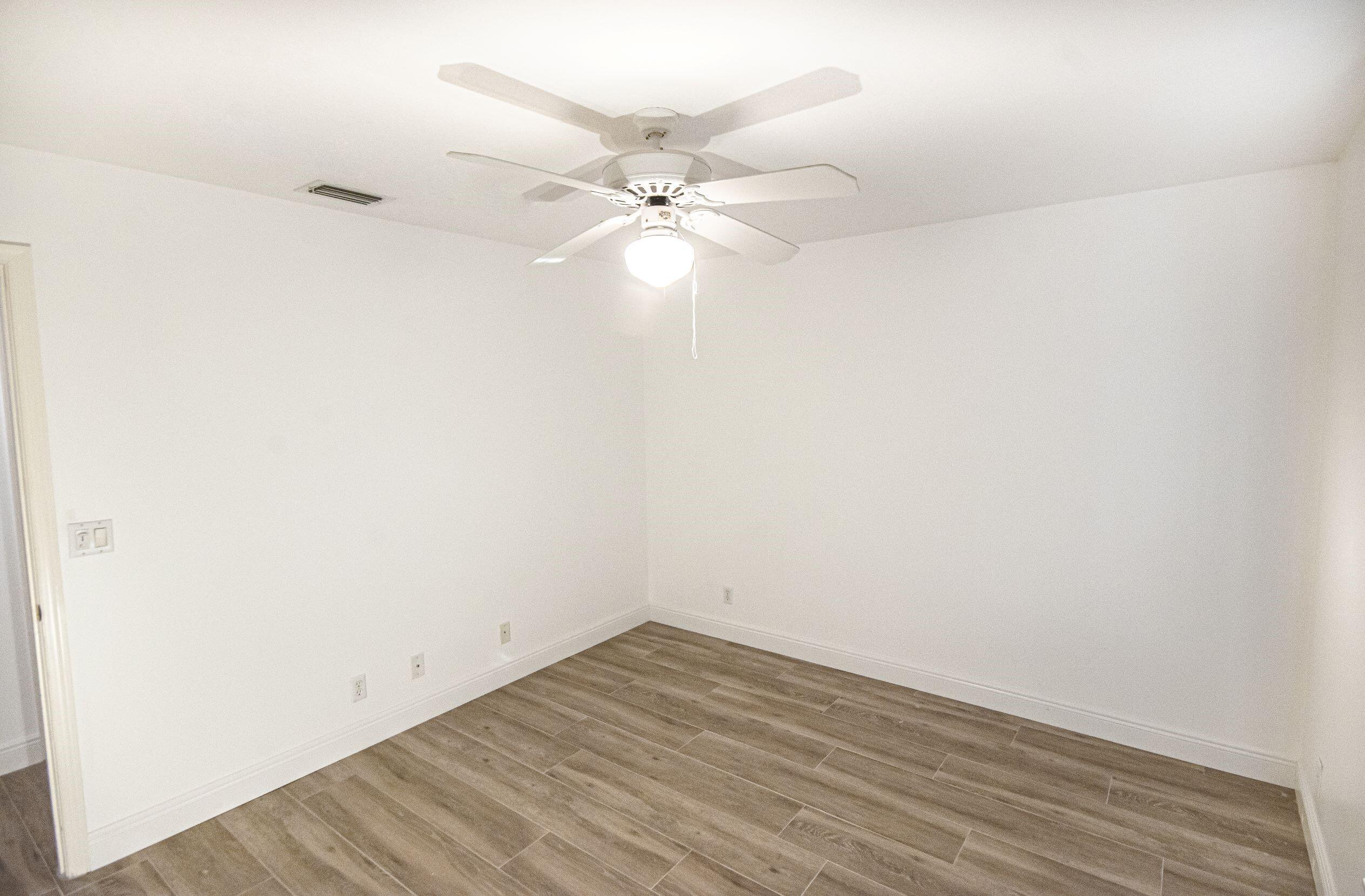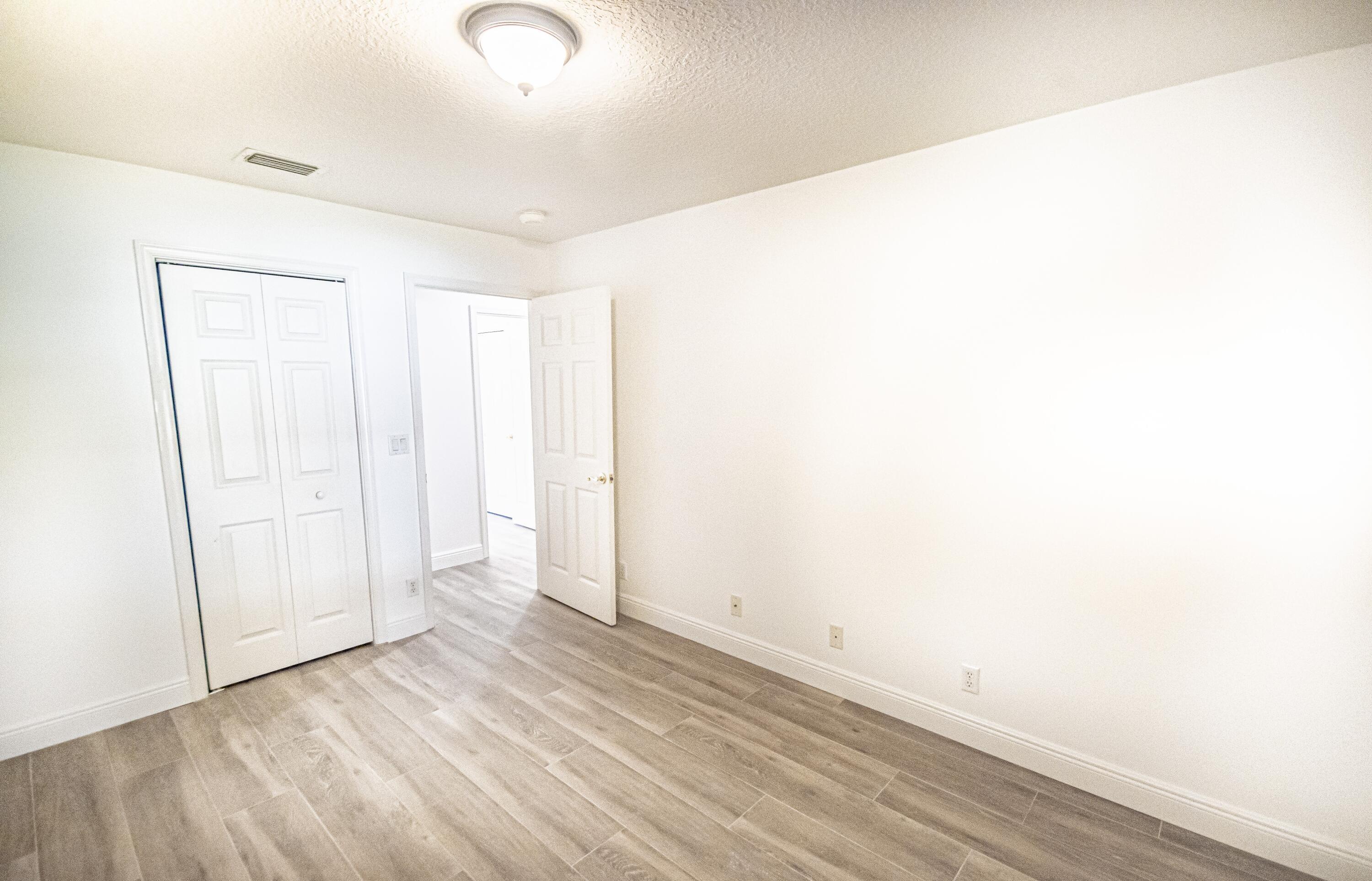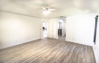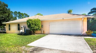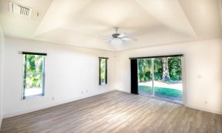 Welcome home to a private oasis located in Jupiter Farms. Single story CBS home with 2 car attached Garage located on paved road. The home has been freshly painted with all New Oak Ceramic Planking and base boarding. Open floor plan with renovated kitchen and baths. Quiet corner property with Large Screened Patio. The kitchen features a center island and white raised cabinetry. Master suite features his and her walk-in closets. The Primary bath has been totally remodeled er, water closet and dual sinks. Second bathroom could serve as a cabana bath. Inside laundry room has built in cabinetry and folding station. Living area has a pocket sliding glass door that leads to a huge 12 x 34 screened in patio.