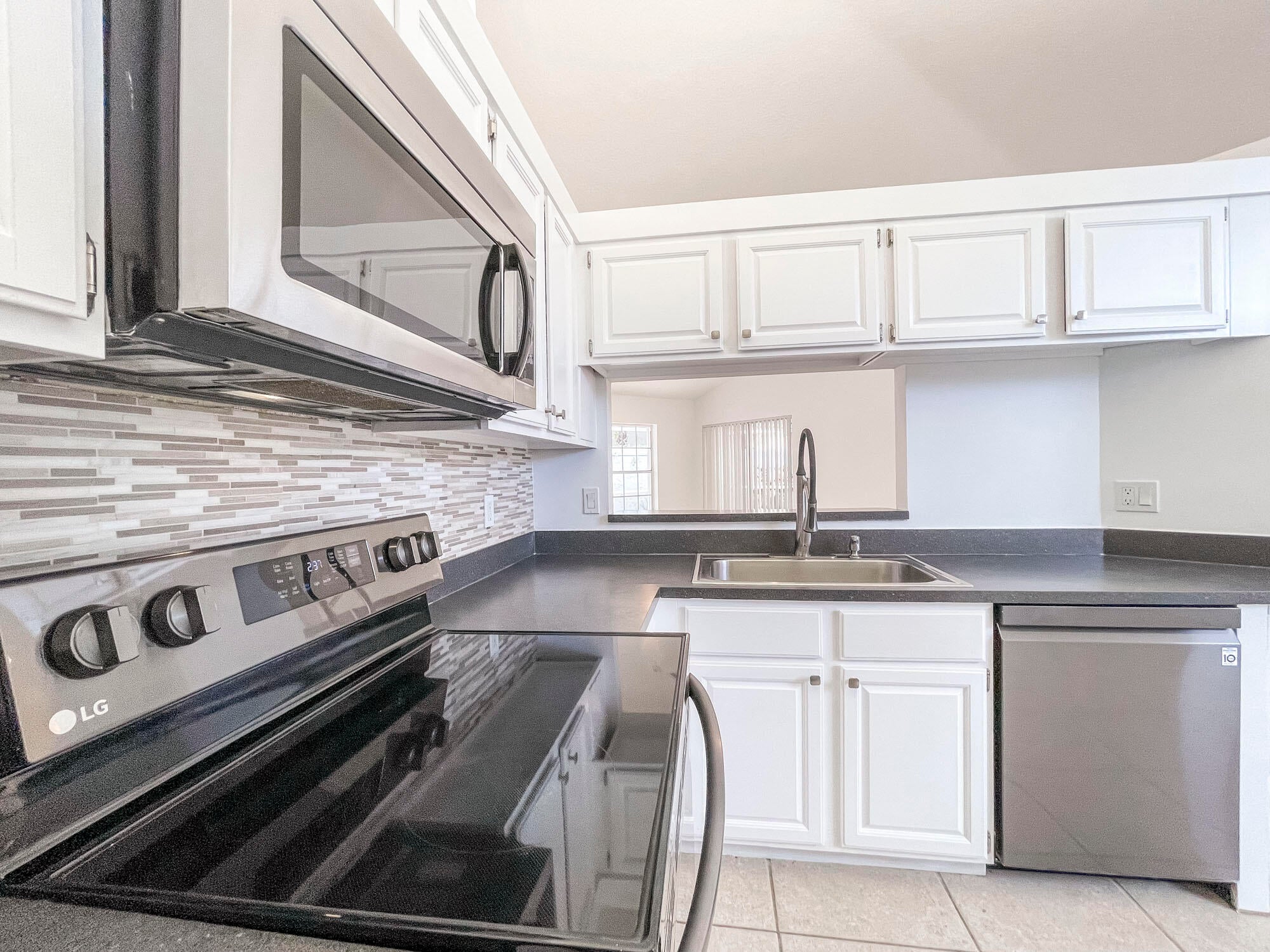Available March 24th, Gorgeous and updated, freshly painted open-plan home surrounded by a private setting and well protected from the elements in the highly sought-after, family-oriented community of Indian Creek. Your new home is only short walk to heated community pool and public golf course. Additional desirable features are large windows & sliding glass doors, large tiled flooring laid on the diagonal, designer ceiling fans & light fixtures, eat-in kitchen with white cabinets, stainless steel appliances, and a spacious master suite with cherrywood floors and plenty of closet space. The large private patio is screened in and has an adjacent grassy area. Pet-friendly community. Cable, Internet & lawn care INCLUDED in rent. Heated community pool.