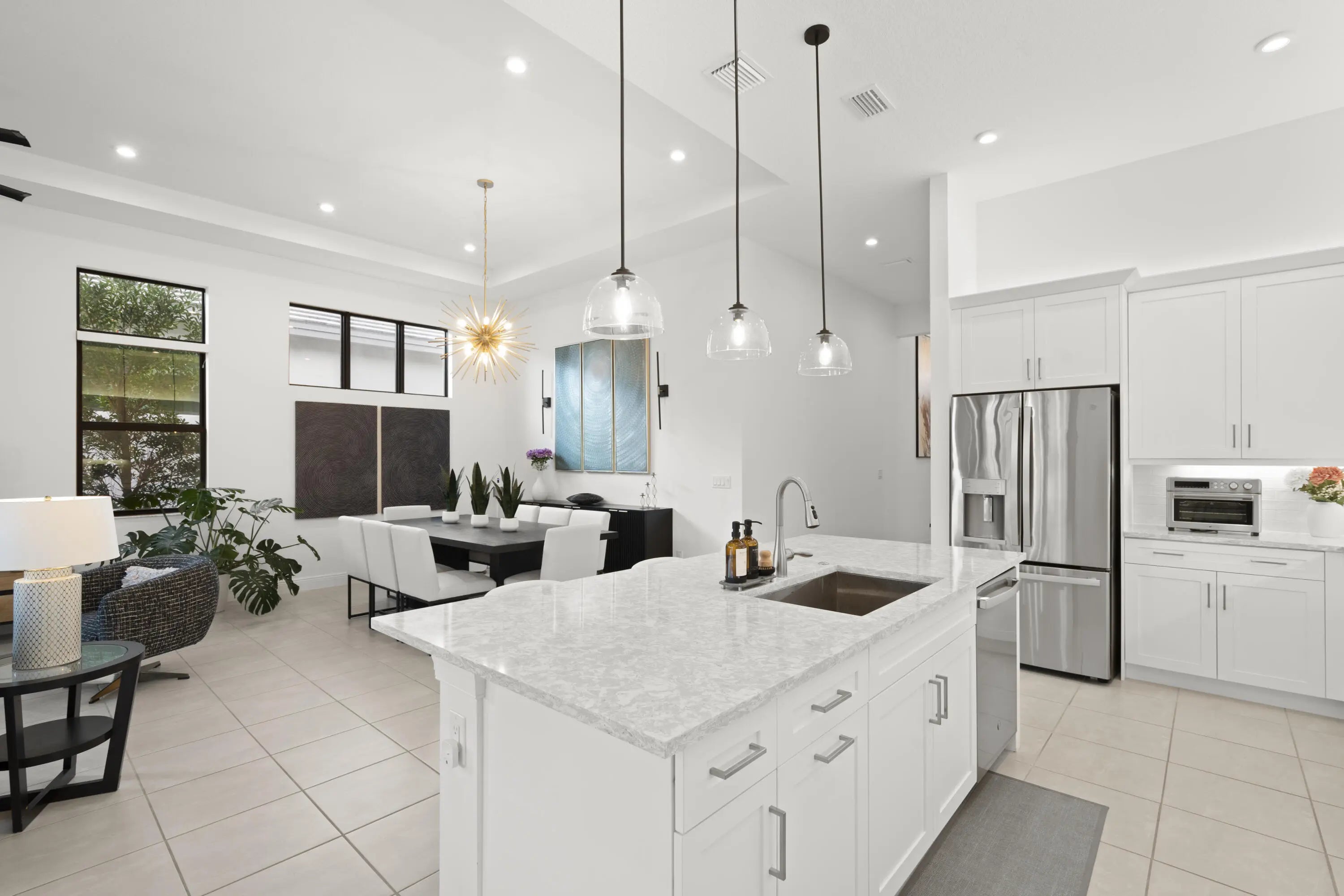 Why wait to build? This stunning 2023 new construction has it ALL without the wait. Enjoy the indoor-outdoor living with serene private preserve views and southern exposure on your extended lanai. Stunning open-floor plan is perfect for entertaining with large quartz kitchen island & gas cook top. High ceilings and natural light throughout. Spacious owners suite features tray ceiling, large walk in closet, and spa like bathroom. 3 additional bedrooms to there's room for everyone. CBS construction with Hurricane Impact windows for peace of mind. Just a short walk to the clubhouse for the pool, gym & pickleball in this all ages community of Mosaic. Only 20 minutes to the beach, 15 minutes to tradition and less than 2 miles to Publix, shopping, dining, new hospital & FL Turnpike