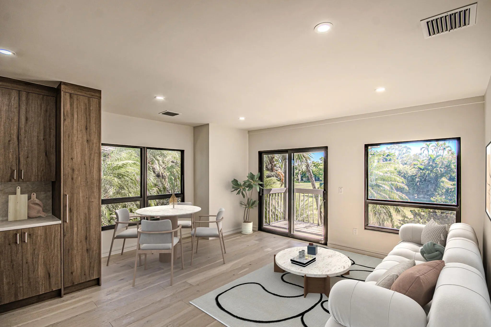 Welcome to Bagatelle at Palm Beach Polo Experience refined living in this stunning second-floor condo, perfectly situated near the guard gate with ample guest parking. This 2-bedroom, 2-bathroom residence has been meticulously updated, offering a sophisticated blend of style and functional design.This unit maintains the versatile floor plan, featuring a traditional full bedroom plus an attached efficiency--ideal for maximizing rental income or hosting guests with privacy.Chef's Kitchen: Renovated with sleek stainless steel appliances, quartz countertops, and modern cabinetry.Spa-Like Baths: Both bathrooms feature quartz vanities, frameless glass showers, and elegant contemporary finishes.Designer Touches: Custom closets, high-end flooring throughout.