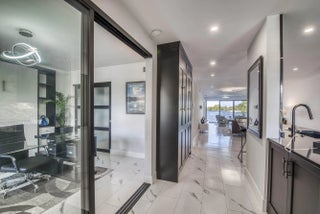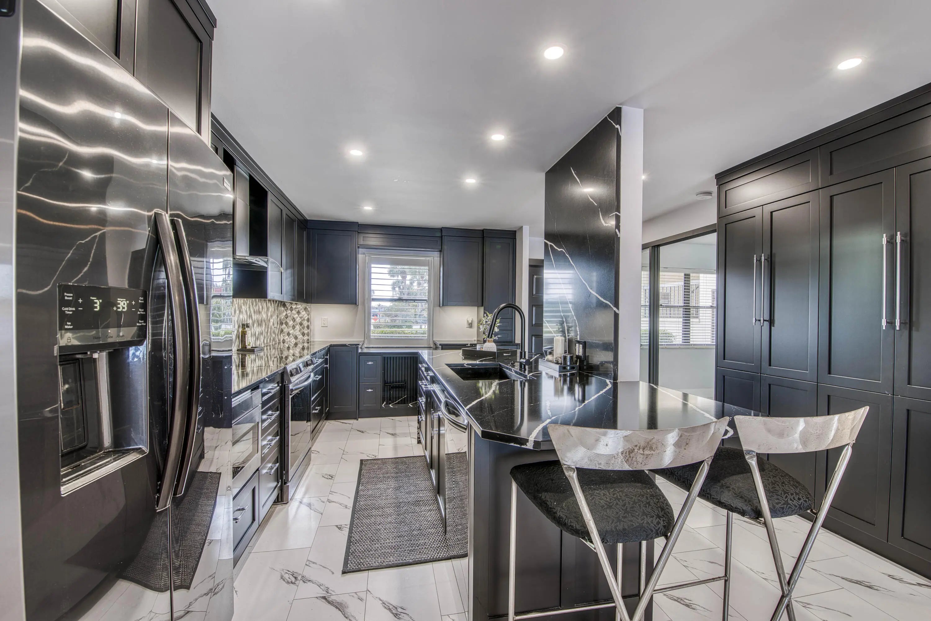 Wake up to panoramic Intracoastal views in this beautifully renovated 2BR/2BA ground-floor condo in the desirable Northlake Condos community in North Palm Beach. Thoughtfully updated throughout, this residence offers high-end finishes, a clean modern aesthetic, and direct water views. The interior features a custom floor-to-ceiling feature wall, and stylish flooring for a warm yet contemporary feel. The gourmet kitchen is outfitted with Frigidaire Gallery stainless steel appliances, modern cabinetry, designer quartz countertops with a waterfall edge, and under-cabinet lighting. Both bathrooms have been fully renovated with timeless tilework, floating vanities, and upscale finishes. The spacious primary suite offers walk-out water views, a generous walk-in closet, and a private