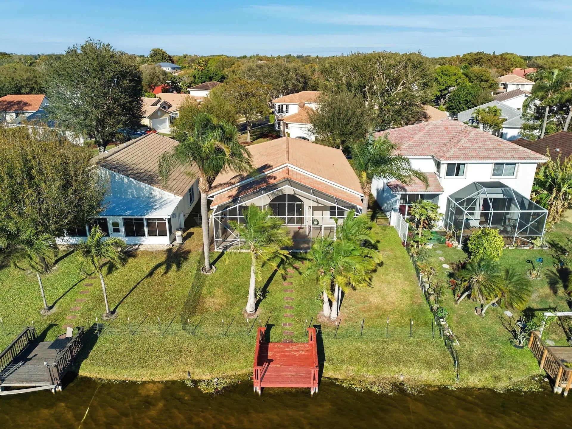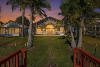 Prime Waterfront location! Experience breathtaking sunset views over Lake Wellington in the sought-after Sunset Point community. This beautifully maintained spacious 3-bedroom, 2-bath single-family home (original owner!) features soaring ceilings, a 2-car garage, and a large, screened-in patio with a partially covered roof (15' x 35') --perfect for relaxing or entertaining year-round.Enjoy the most pristine location on Lake Wellington, where you can kayak or pontoon right from your backyard dock. The community offers a heated pool for year-round enjoyment and is just a short walk to the amphitheater, where you'll find live music and entertainment, minutes from shopping, restaurants and the mall. NEW AC 2026!