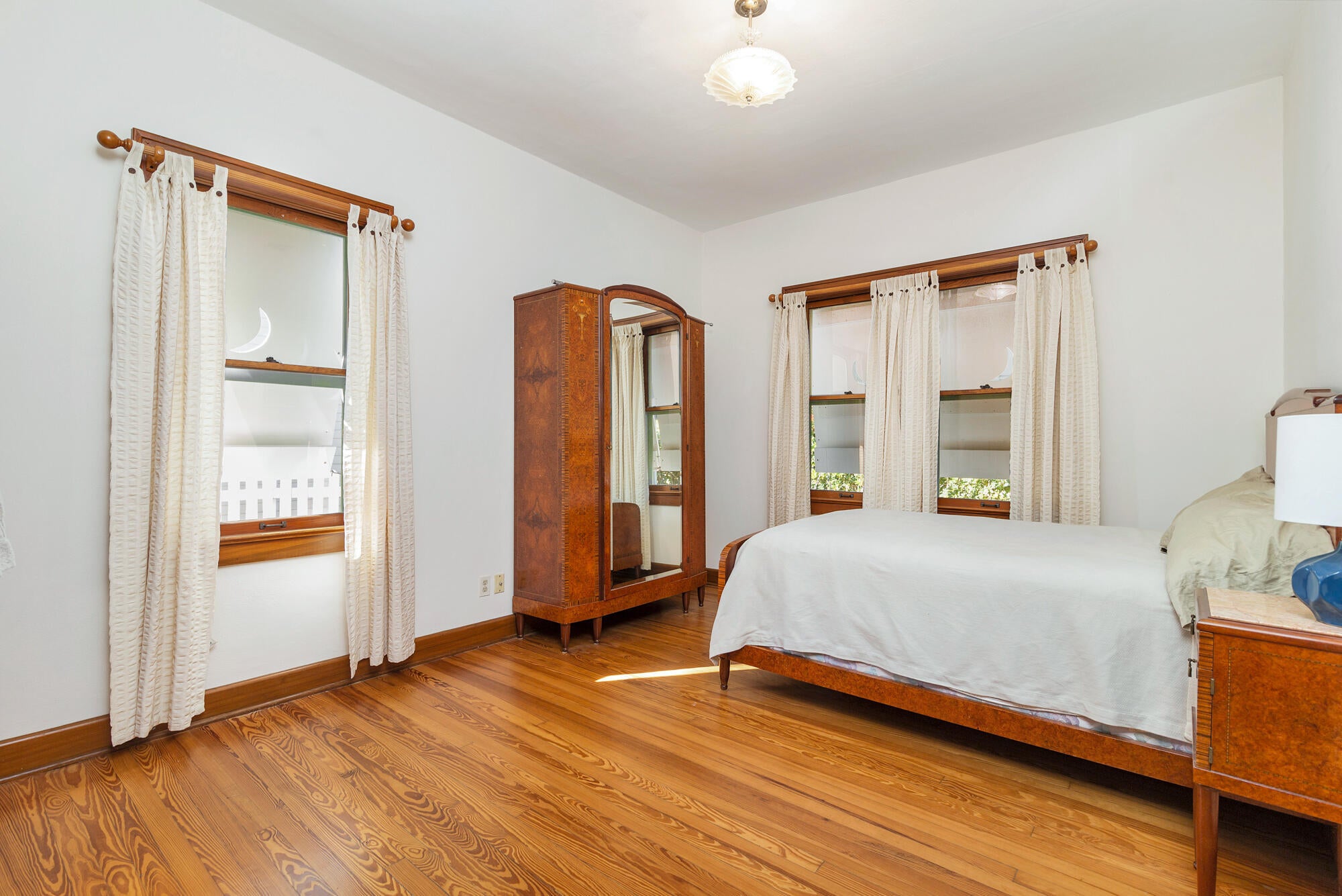 This 1935 historical home sits on a corner lot in the beautiful downtown area of Flamingo Park. The 3/2 house has been fully renovated and meticulously maintained by the present owner. All the features are period to the home such as the Mediterranean interior high ceilings, original hard wood floors, the woodwork is naturalextinct red cypress, plaster crown moldings and a working fireplace. In addition, there is a beautiful modern kitchen and restored bathrooms. All plumbing and electrical have been replaced. There are double-hung windows which are fully functional. The generator with tri-fuel capabilities runs off of a natural gas line on the premises fully capable of running the entire home.The 560 square foot garage has automated barn doors with 14' ceilings which could hold multiple vehicles if lifts were installed. If you want to live in a warm and wonderful vintage home close to everything the Palm Beach area has to offer this gem may be the choice for you.
