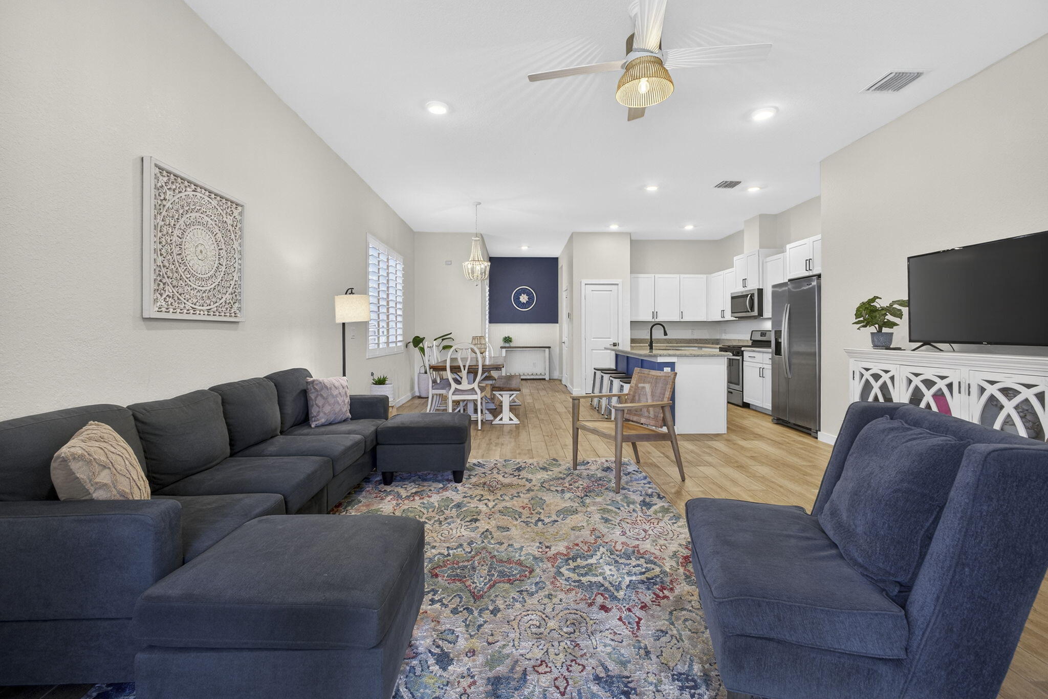 This home is situated within walking distance to the new Saddle View Elementary school. Welcome to 19699 Weathervane Way in Arden. 3 bedrooms plus a flex room, 2 full baths and a 2 car garage, completely fenced and on green space. Brand new LVP flooring in all bedrooms, tile in main living areas, newly painted interior, granite countertops and stainless steal appliances.Arden is a highly sought after resort style community with 3 pools, cabanas, clubhouse and hot tub. State of the art fitness center and a 5 acre working farm which you get a share of. U-pick herbs and children's garden. 20 miles of trails and 5 new pickleball courts along with a basketball and tennis court. Weekly Food trucks and community events.