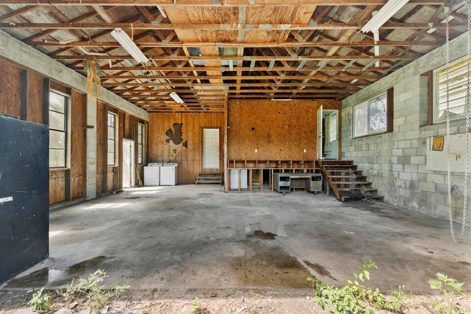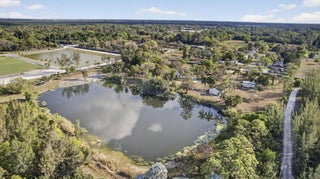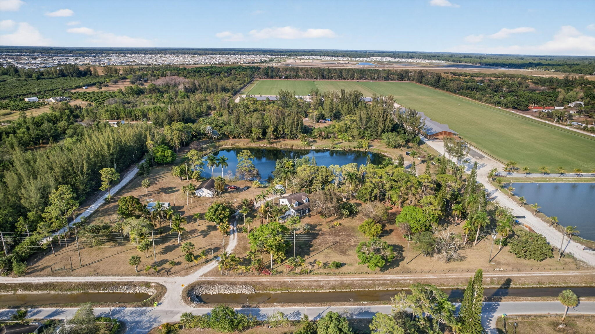 This 10-acre non-HOA property features a 3-acre lake, mature trees, and a two-story main house, and Guest cottage with vaulted ceilings and loft. Additional amenities include a workshop-garage with a 1-bed/1-bath apartment, fenced land, two-car garage, covered RV pad, electric, public water, well system, and septic. Sold as-is due to roof age, the estate is ready for barns, arenas, and paddocks, perfect for an equestrian retreat minutes from Wellington's showgrounds.