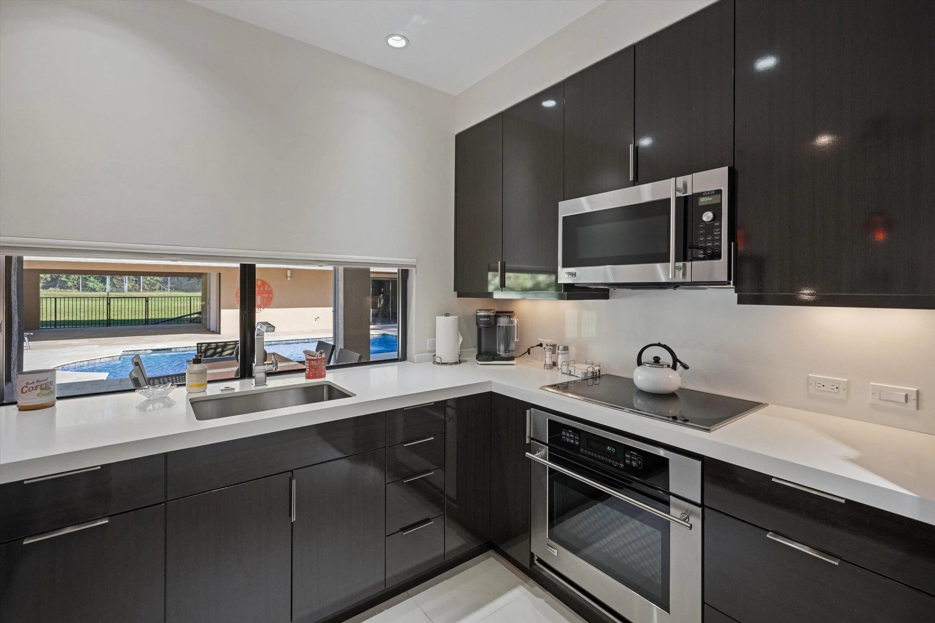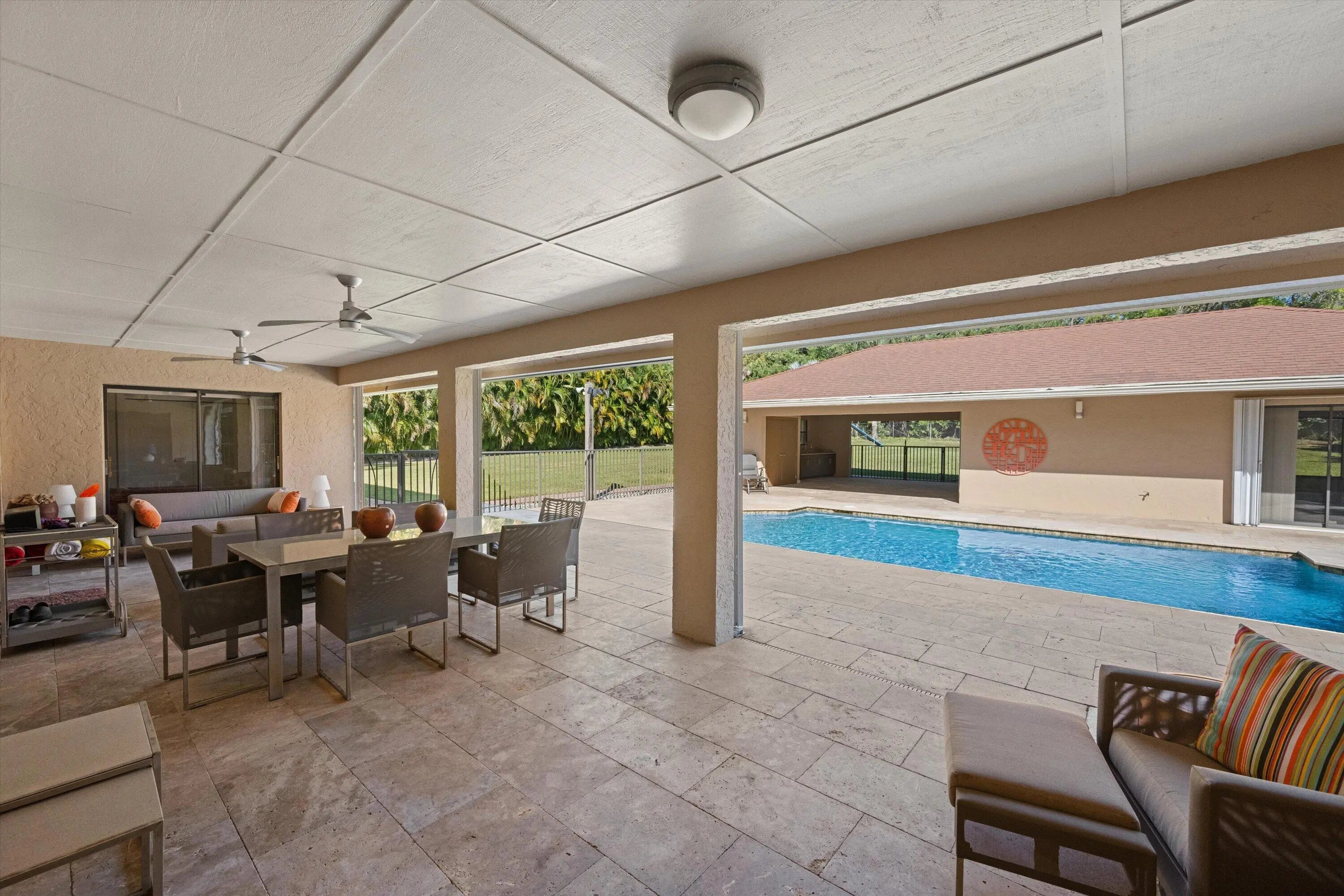 Stunning pool home with guest house on a 1 acre, lot right in the heart of Wellington! Rare opportunity to own a completely updated, meticulously maintained home without HOA restrictions. Ideally located minutes from Wellington's equestrian venues, it's perfect for those seeking proximity to Wellington's showgrounds, restaurants and clubs while maintaining privacy and space. The guesthouse is currently used as a canine training room but could easily be converted into a spacious office or living quarters. Upon entering, you are welcomed into a bright, thoughtfully designed split floor plan, providing views of the pool. Notable upgrades include tile flooring throughout, an open-concept kitchen featuring quartz countertops and top-of-the-line cabinets as well as the whole house