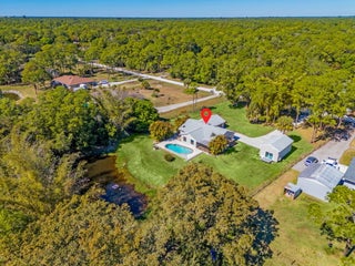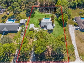 Welcome to this beautifully appointed three-bedroom, two-bathroom home set on a generous lot in Jupiter Farms. Thoughtfully upgraded for comfort and peace of mind, the home features a newer roof (2023), newer HVAC system (2023), and an 18,000-watt whole-house generator (2023) powered by propane or gas, offering effortless living in any season. The interiors showcase a timeless aesthetic with granite kitchen countertops and a custom hood, cohesive luxury vinyl flooring throughout, LED lighting, and approved hurricane shutters.Meticulously maintained infrastructure includes a well system with a new well pump (2025) and double carbon water filtration.Outdoors, enjoy refined Florida living with a resurfaced pool, a two-car garage, and a substantial 30' x 16' storage building ideal for a workshop or recreational use. A rare Jupiter Farms offering that blends privacy, reliability, and convenient proximity to beautiful beaches, shopping, and dining. No HOA!