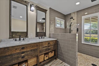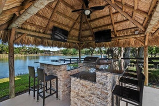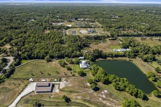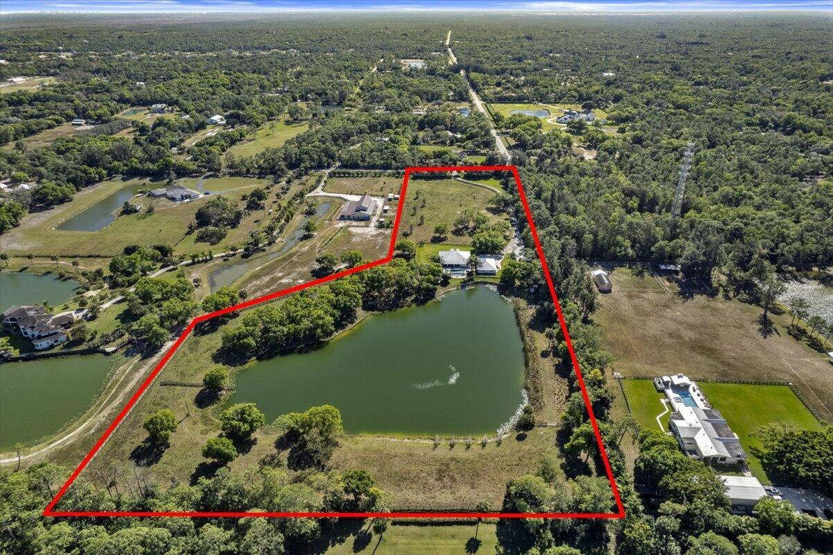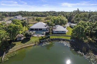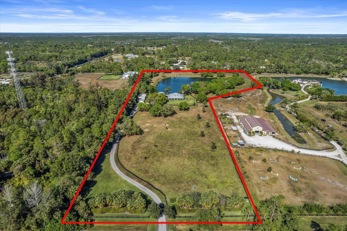 A rare 12-acre private estate offering exceptional luxury and tranquility just minutes from Jupiter's beaches. The custom residence features 5 bedrooms plus office and 3 full baths, overlooking a serene spring-fed lake and resort-style infinity pool. A separate 1BR/1BA guest house provides ideal accommodations. Complete impact glass, underground FPL electric, full-house generator (excluding shop), whole house water filtration system, upgraded electrical throughout, septic and well. Entertain in style with a tiki bar and summer kitchen. A climate-controlled shop with hot/cold water accommodates up to 10 vehicles, plus additional parking. New fencing and landscaping, gated entry, upgraded irrigation from pond water. A truly one-of-a-kind Jupiter estate!