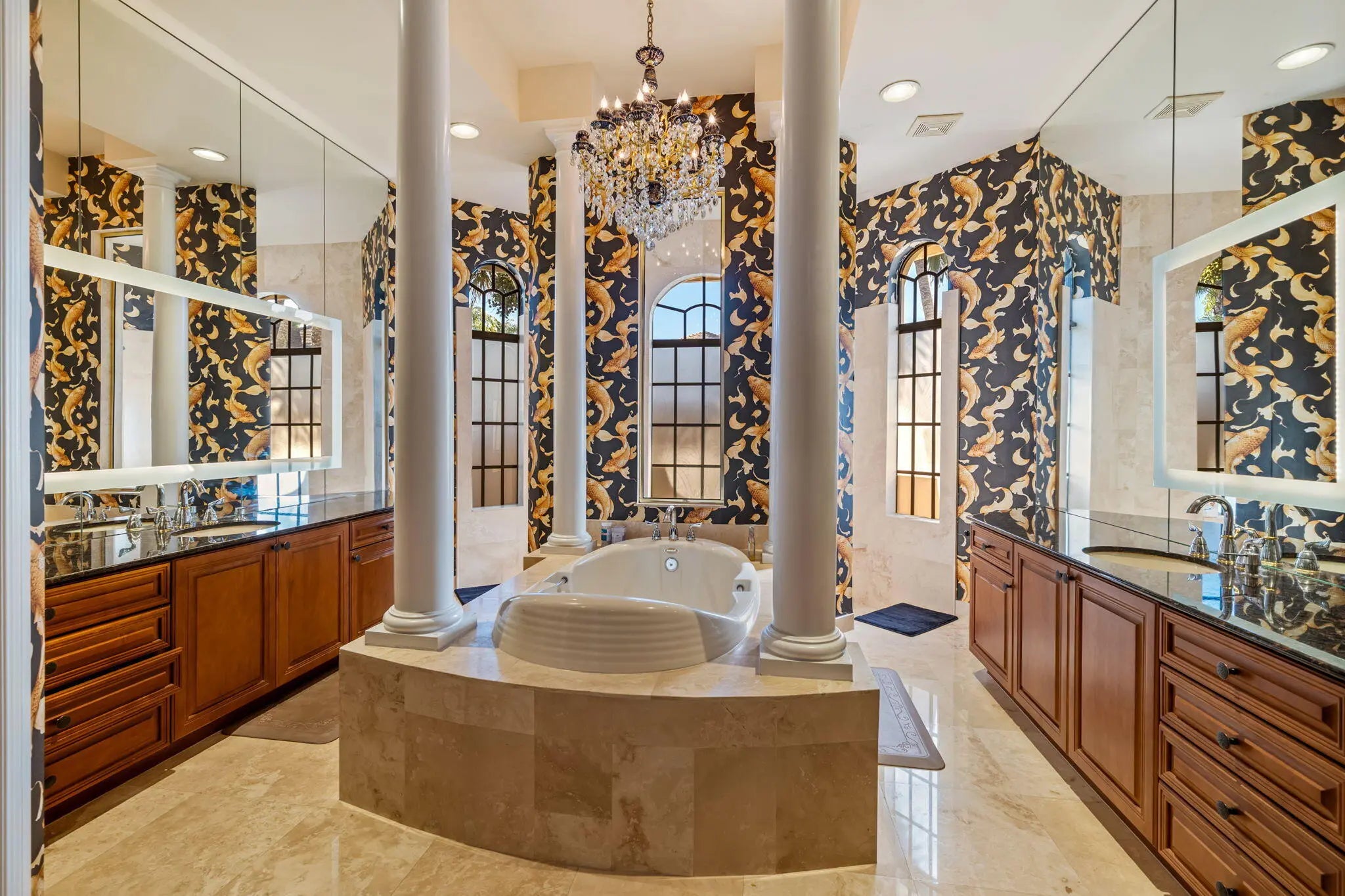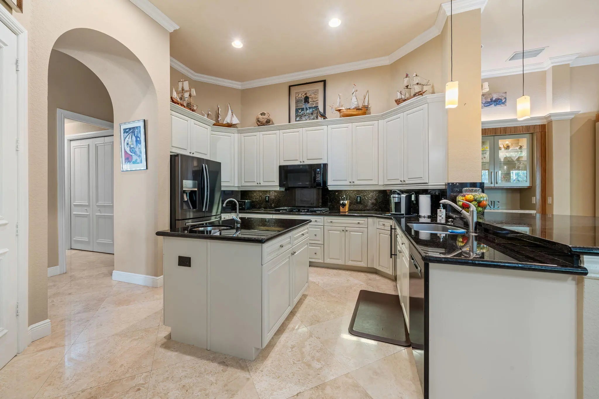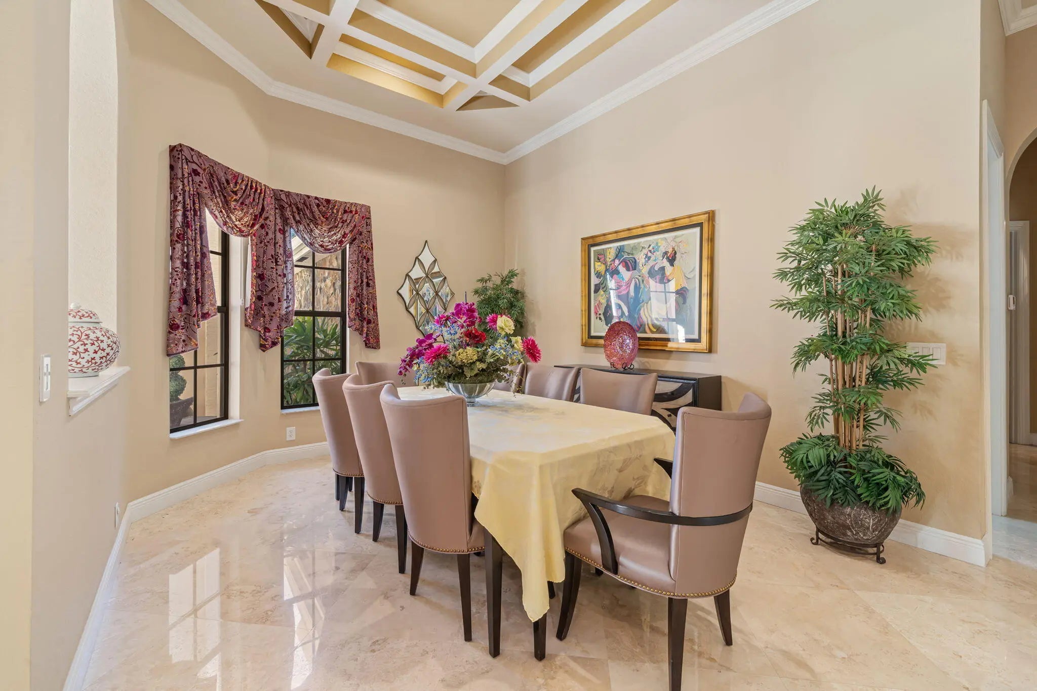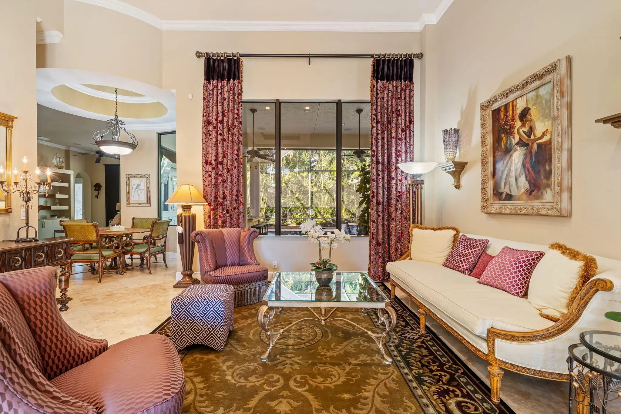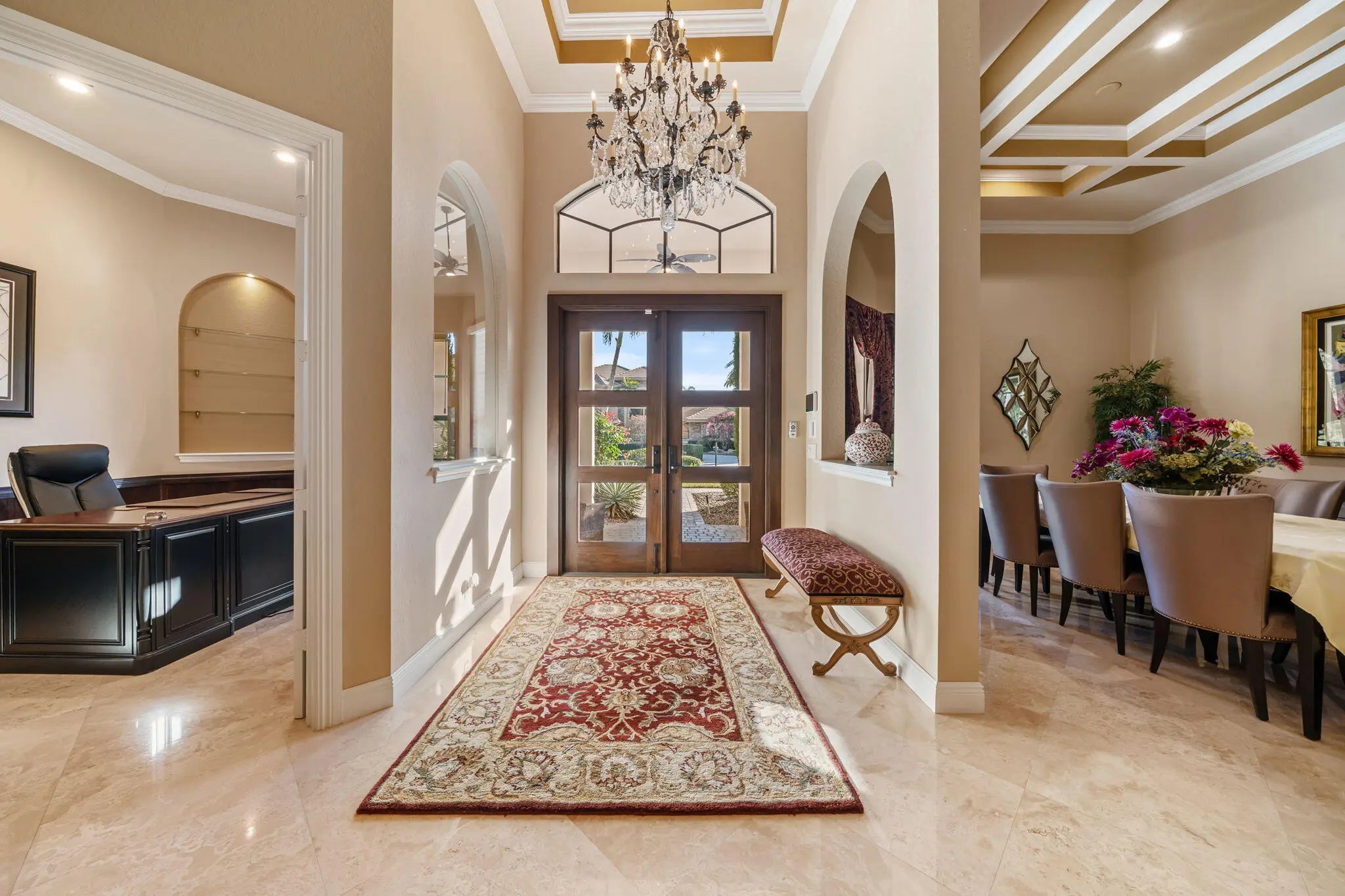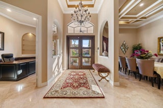 Welcome to this spectacular pool home in the sought-after Versailles community! This impressive residence features 4 spacious bedrooms plus a dedicated office and 3.1 beautifully appointed bathrooms. Elegant interiors showcase stunning 24'' Saturnia marble floors throughout the main living areas. The three bedrooms and the office feature engineered hardwood floors and generous walk-in closets, while the fourth bedroom offers upgraded carpet providing comfort and versatile options for the whole family. The gourmet kitchen is a chef's dream with granite countertops, extended breakfast bar, center island with separate sink, double oven, wood cabinetry, and convenient under-cabinet lighting. The expansive primary suite is a true retreat, featuring dramatic double tray ceilings and