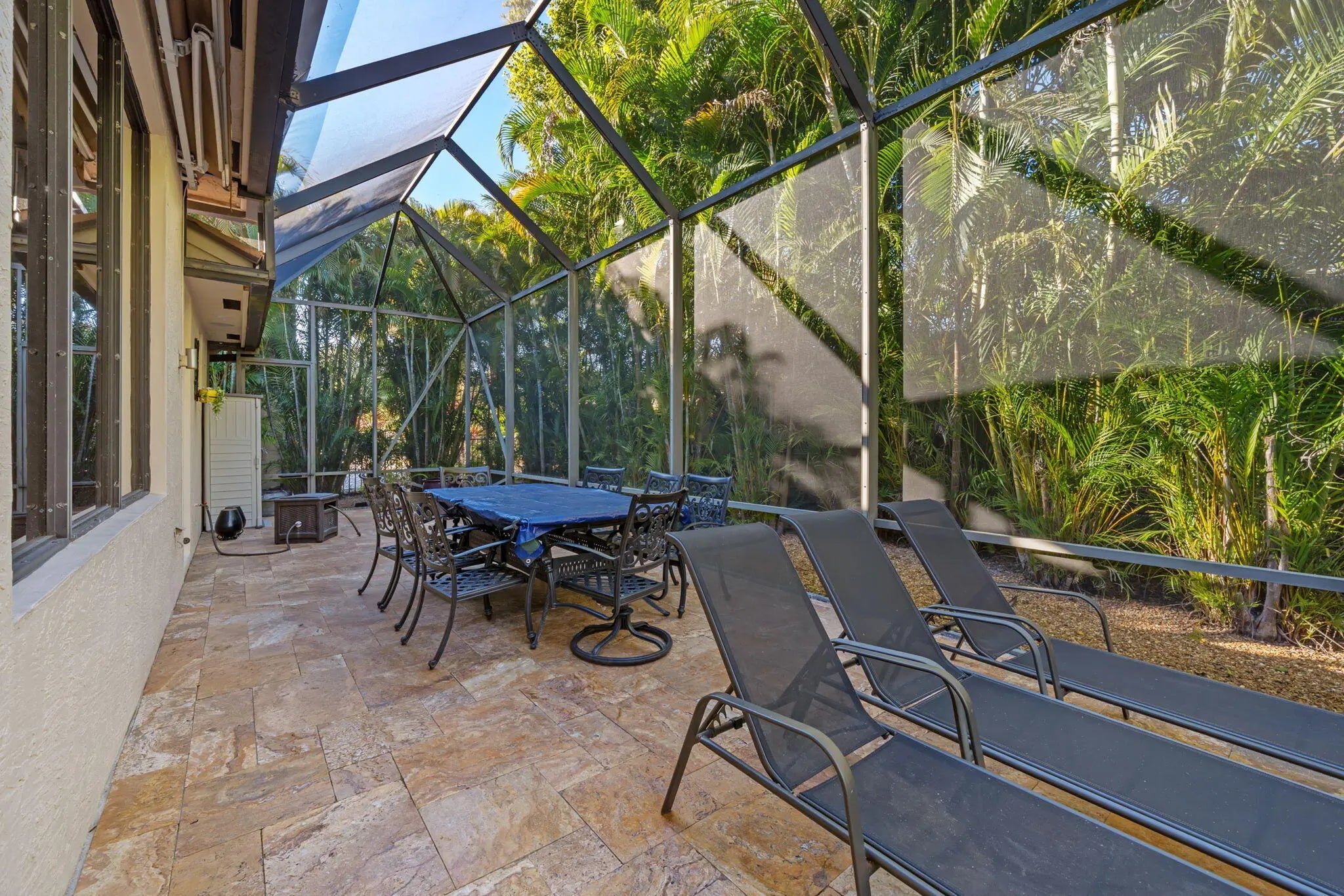 Auto Sprinkler, Awnings, Built-in Grill, Covered Patio, Custom Lighting, Screened Patio, Summer Kitchen, Zoned Sprinkler