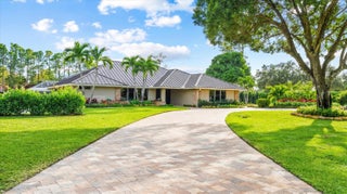 Beautiful 4-bed, 3-bath single-family home with a 2-car garage on 2.2 acres, perfectly set up for the equestrian lifestyle. Large ceramic tile flows throughout, complemented by crown molding and formal dining, living, and family rooms. The updated kitchen features white and gray shaker cabinets, quartz countertops, stainless steel appliances, and a sunny breakfast nook. Enjoy a screened-in pool and a private studio with full bath--ideal for guests or staff. Outside offers an 8-stall barn with tack room, training arena, city water, and NO HOA.