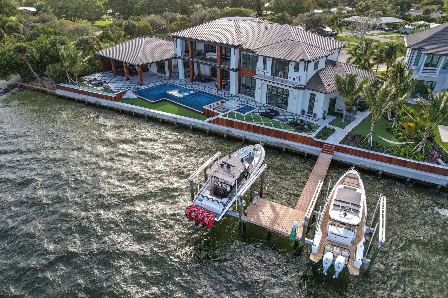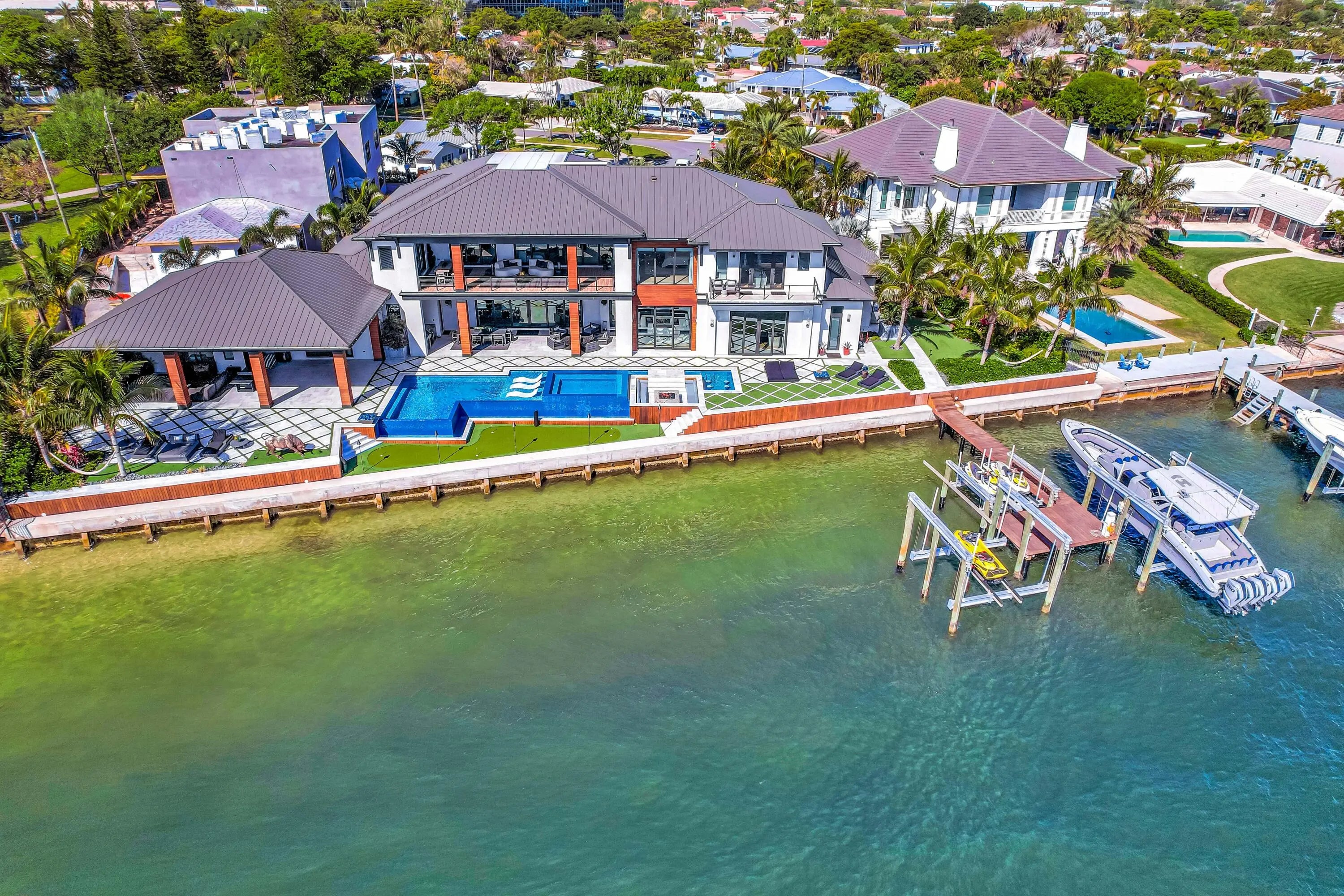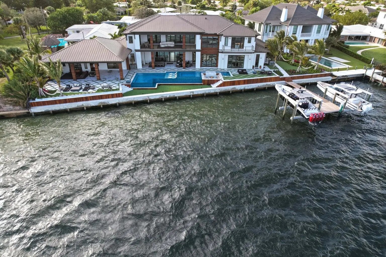 WELCOME TO 712 LAKESIDE CIR. THIS AMAZING NEWER CONSTRUCTION HOME WAS COMPLETED IN 2022 AND NO EXPENSE WAS SPARED. THIS HOME OFFERS ONE OF THE WIDEST INTRACOASTAL VIEWS IN PALM BEACH COUNTY. THE HOME OFFERS A UPSTAIRS AND DOWNSTAIRS PRIMARY BEDROOM THAT OFFER STUNNING VIEWS. THE HOME HAS ALL THE LATEST SMART HOME AND GREEN HOME TECHNOLOGY RUN FROM THE COMFORT OF YOUR CELL PHONE ANY WHERE IN THE WORLD. THE HOME HAS A 200 FOOT SEAWALL AND DOCK WITH TWO 32K ULTRA HIGH SPEED HIGHTIDE BOAT LIFTS. CAPABLE OF LIFTING UP TO A 50 FT BOAT. AS WELL AS A DOUBLE JETSKI LIFT. THIS HOME IS A TRUE ENTERTAINERS PARADISE WITH COMPLETE PRIVACY IN THE BACKYARD WITH NO NEIGHBORS IN SIGHT. JUST WIDE OPEN VIEWS OF THE INTRACOASTAL WITH A RESORT STYLE POOL WITH ALL THE BELLS AND WHISTLES.