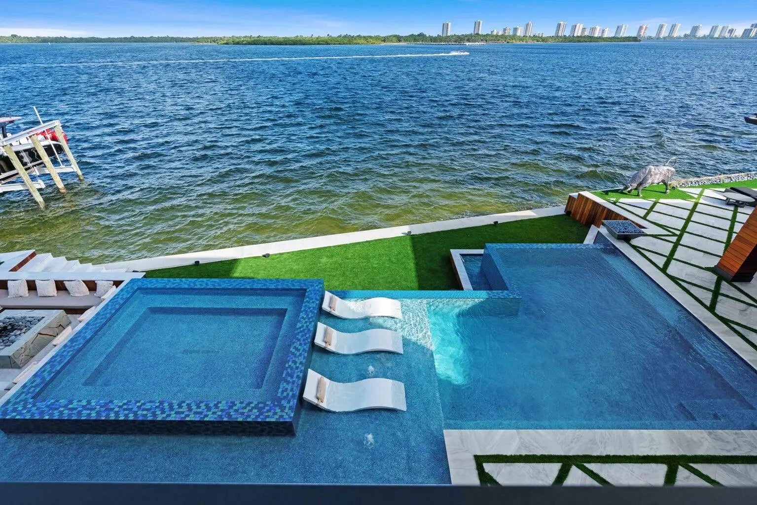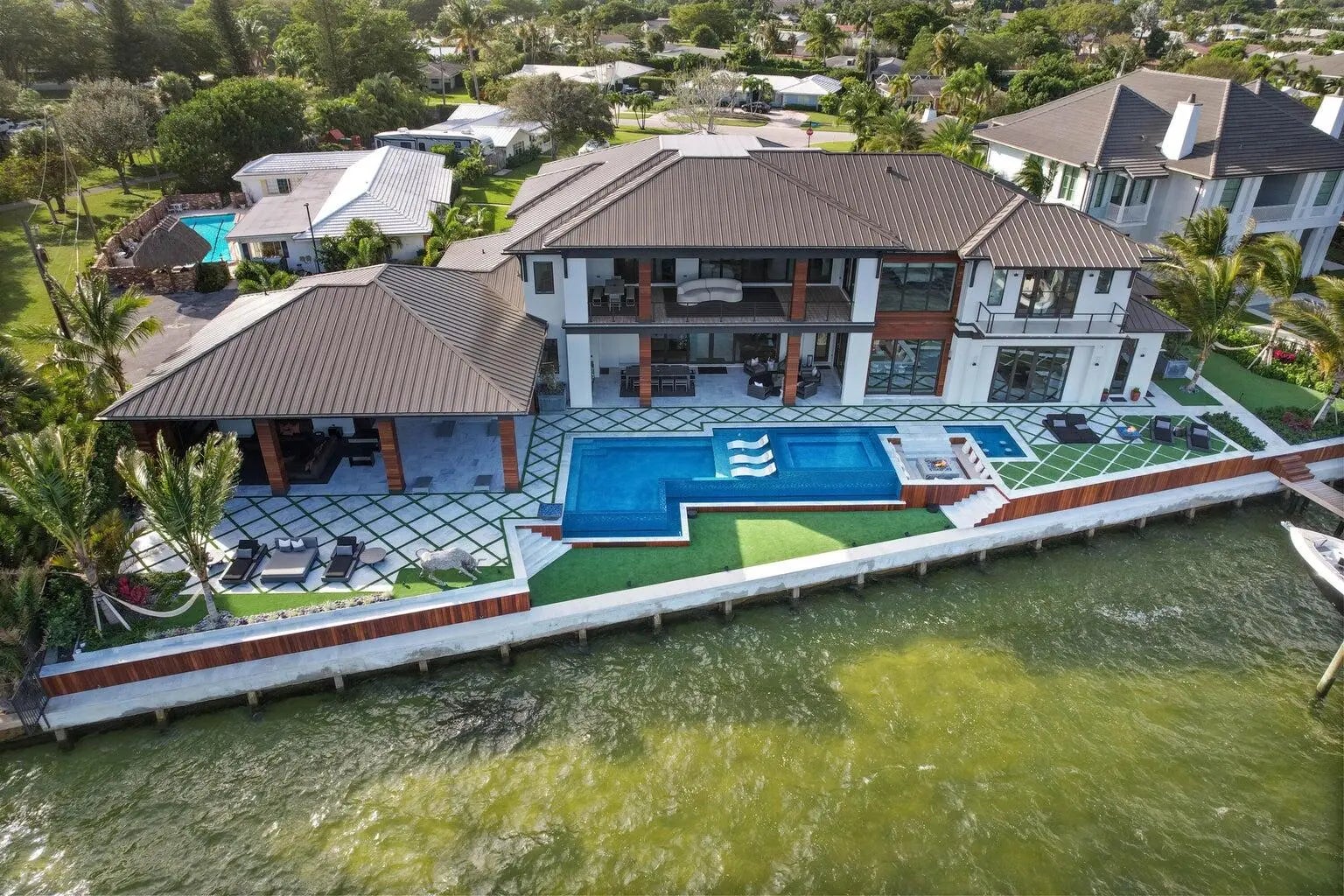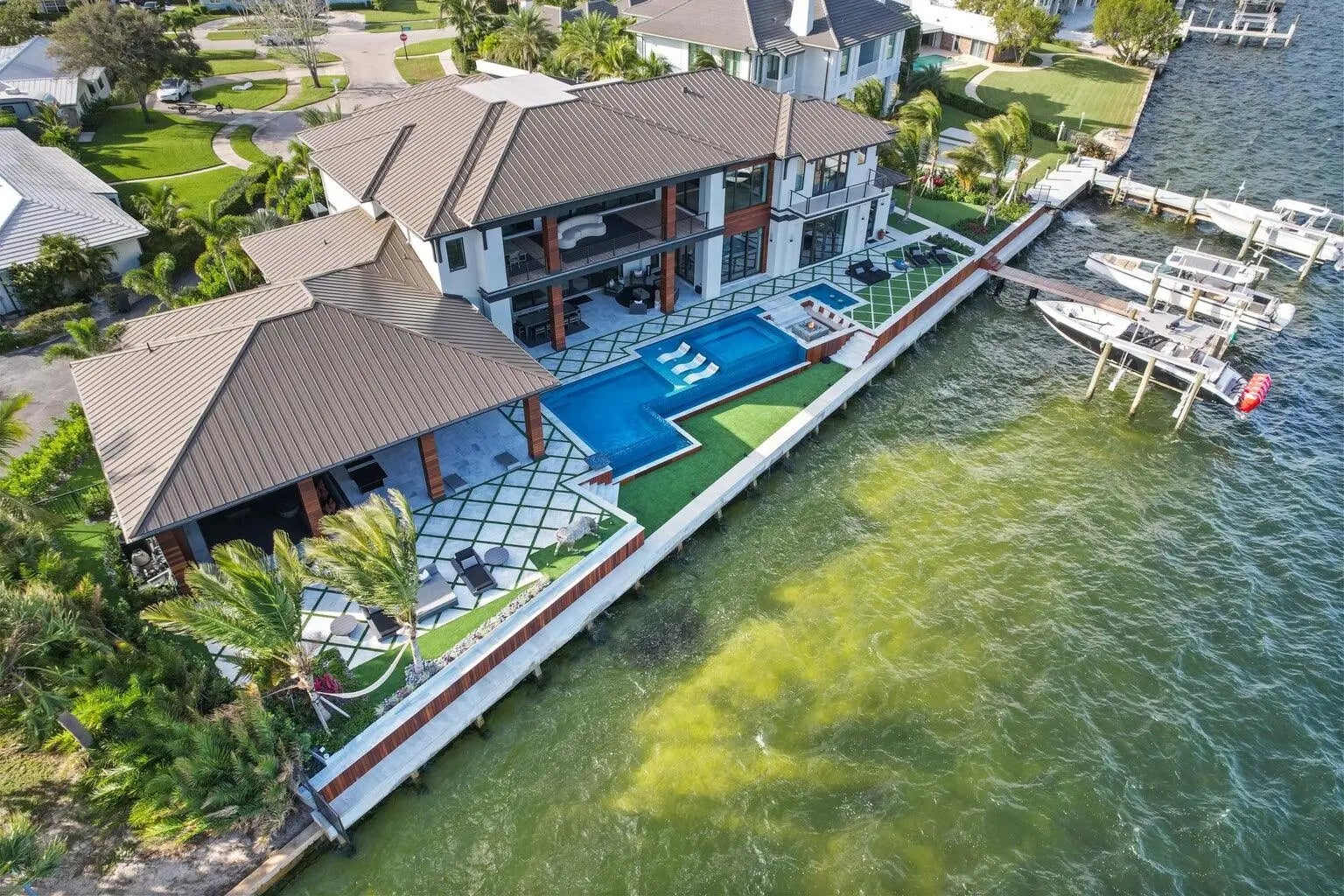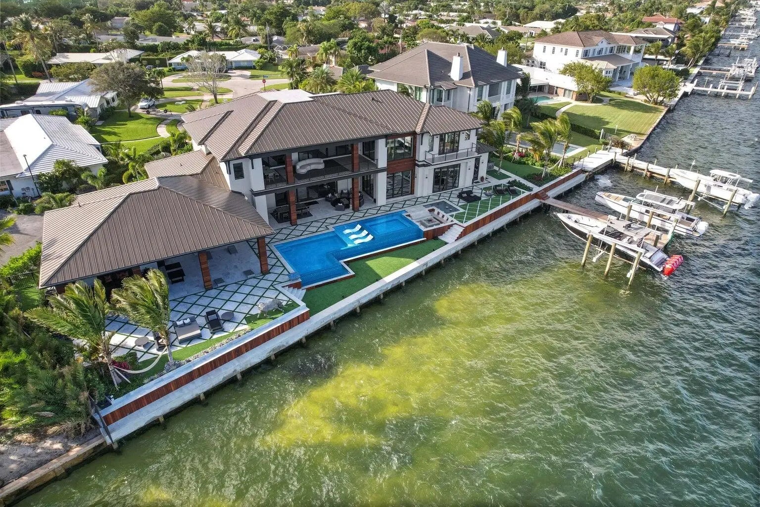 WELCOME TO 712 LAKESIDE CIR. THIS AMAZING NEWER CONSTRUCTION HOME WAS COMPLETED IN 2022 AND NO EXPENSE WAS SPARED. THIS HOME OFFERS ONE OF THE WIDEST INTRACOASTAL VIEWS IN PALM BEACH COUNTY. THE HOME OFFERS A UPSTAIRS AND DOWNSTAIRS PRIMARY BEDROOM THAT OFFER STUNNING VIEWS. THE HOME HAS ALL THE LATEST SMART HOME AND GREEN HOME TECHNOLOGY RUN FROM THE COMFORT OF YOUR CELL PHONE ANY WHERE IN THE WORLD. THE HOME HAS A 200 FOOT SEAWALL AND DOCK WITH TWO 32K ULTRA HIGH SPEED HIGHTIDE BOAT LIFTS. CAPABLE OF LIFTING UP TO A 50 FT BOAT. AS WELL AS A DOUBLE JETSKI LIFT. THIS HOME IS A TRUE ENTERTAINERS PARADISE WITH COMPLETE PRIVACY IN THE BACKYARD WITH NO NEIGHBORS IN SIGHT. JUST WIDE OPEN VIEWS OF THE INTRACOASTAL WITH A RESORT STYLE POOL WITH ALL THE BELLS AND WHISTLES.