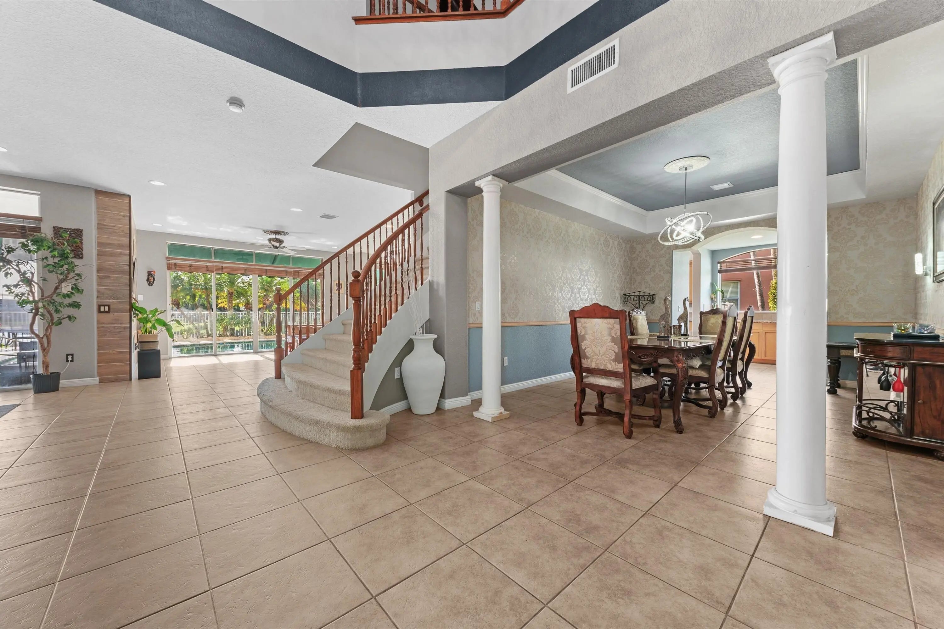 Welcome to the prestigious resort style community of Olympia, where homes range from 600K-2M in the A rated Wellington school district. 6BR/5.5BA over 5200 total sq. ft. coveted Verona model with gorgeous pool, overlooking the long lake view home waiting for a new family to love. ROOF IS ONLY 7 YEARS YOUNG! Stotesbury is a premier Grandezza collection of estate homes lined with gorgeous mature royal palms. So get into these A rated schools ASAP in this lakefront and pool/spa estate home! The home has a stunning brand new pool with a fabulous sun shelf and huge spa and gorgeous travertine patio surround! Your own back yard paradise awaits ands still has room for a swing set, trampoline, or putting green. Cabana bath of course. Main floor also has a full bedroom and another full bathroom.