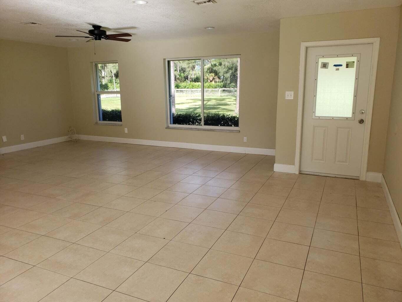 3 /2 Single Family Residence with 2 Car Garage on 1+ acre with spacious fenced back yard. The open floor plan provides easy access to the fenced backyard for entertaining and pets.Located on a quiet road with no thru traffic. Enjoy Country life within minutes of City Amenities. Yes - we do slow for Horses! Truck, Boat, RV, Horse Trailer parking permitted. Great location - convenient to Palms West & Wellington Regional Hospitals and Palm Beach State College.Lawn Service included.Local wildlife includes free roaming peacocks.Move in requirements: Background & Credit Check. 1st, last, Security deposit.Cleaning & Pet fee.All measurements are approximate.Great location - convenient to Palms West & Wellington Regional Hospitals and Palm Beach State College.