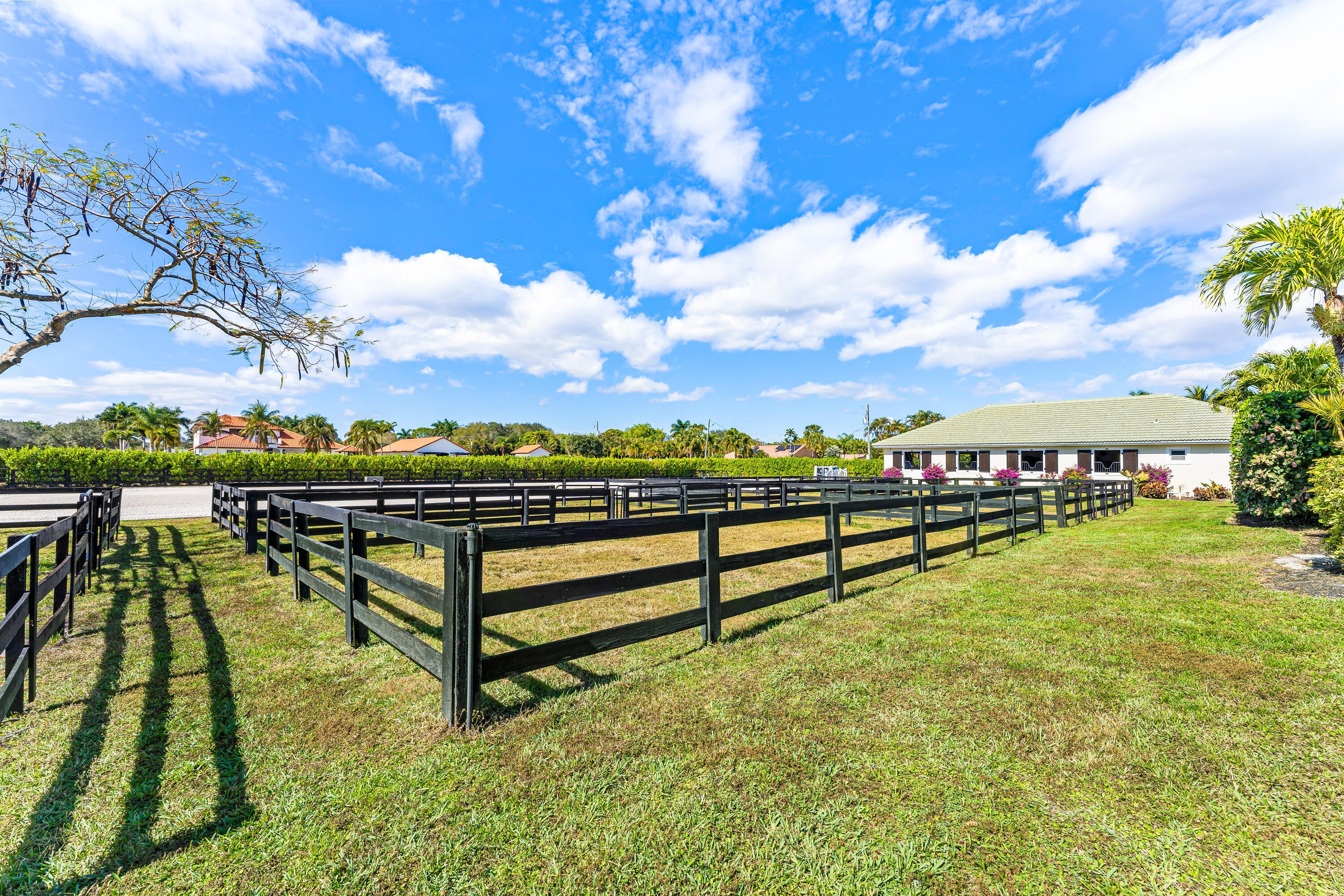 Listed price is per dry stall, per month, for annual lease. Exceptional annual rental opportunity in desirable Paddock Park! This well-maintained equestrian farm features 8 stalls, 6 paddocks, and a 100' x 200' riding ring with a full set of jumps. The hurricane-proof CBS center-aisle barn offers rubber-matted stalls, fans, and automatic waterers throughout. Situated on a corner lot with direct access to the bridle path, this property provides both convenience and privacy for serious riders and trainers. Ideal for daily training, the property also includes a studio apartment with a full bathroom and laundry, offering convenient on-site living.
