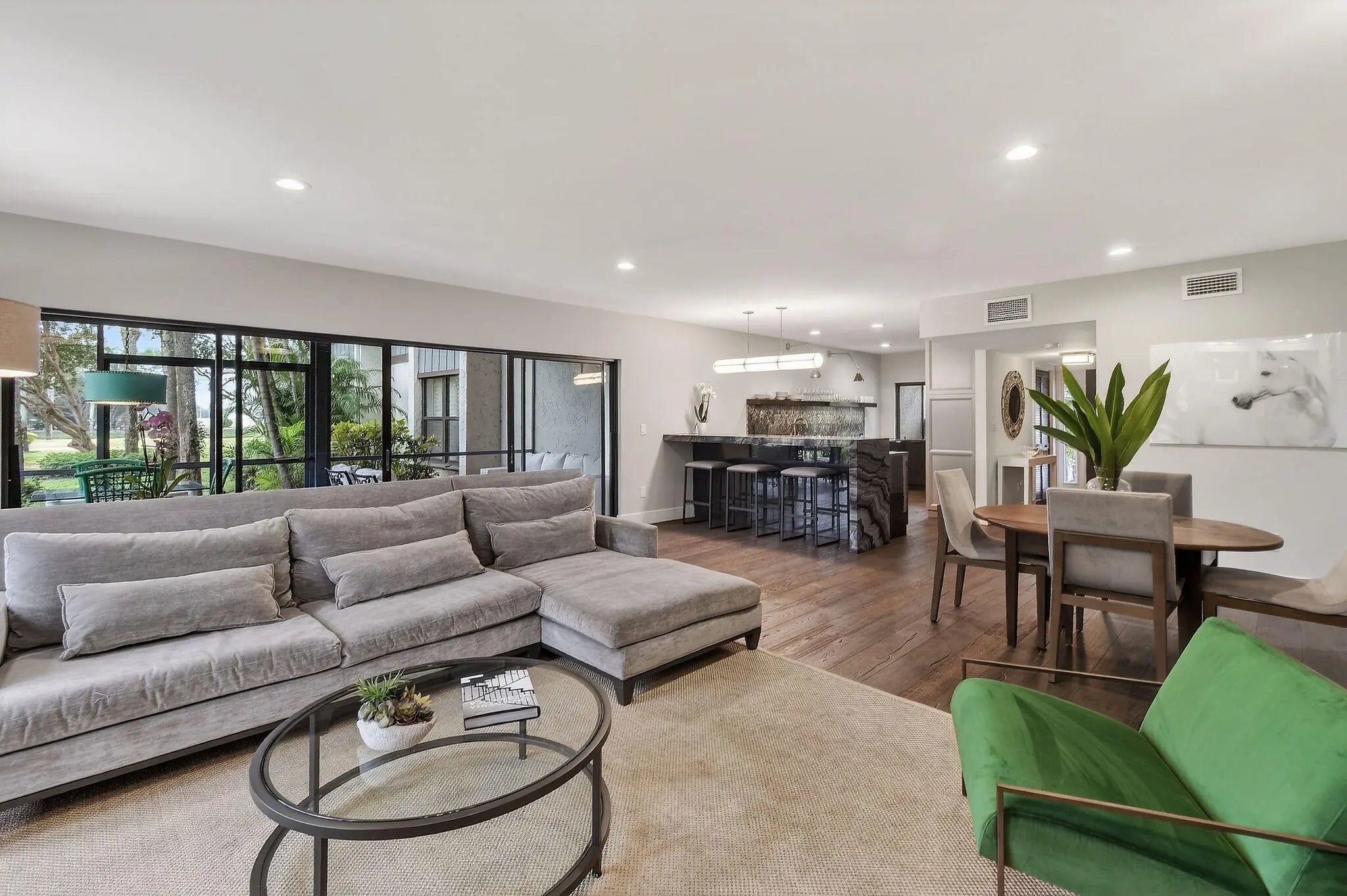 Well maintained and thoughtfully updated condo located in the desirable Polo Club area of Wellington. This ground floor residence includes a rare two car garage and offers a functional layout with comfortable living and dining spaces, generous natural light, and a screened patio ideal for relaxing or entertaining. The kitchen is equipped with luxury appliances, ample cabinetry, and generous workspace. A full size front loading washer and dryer with a separate dry cleaning unit are included for added convenience. The primary suite features a walk in shower, spacious closet, and private bath, while the secondary bath also offers a shower.