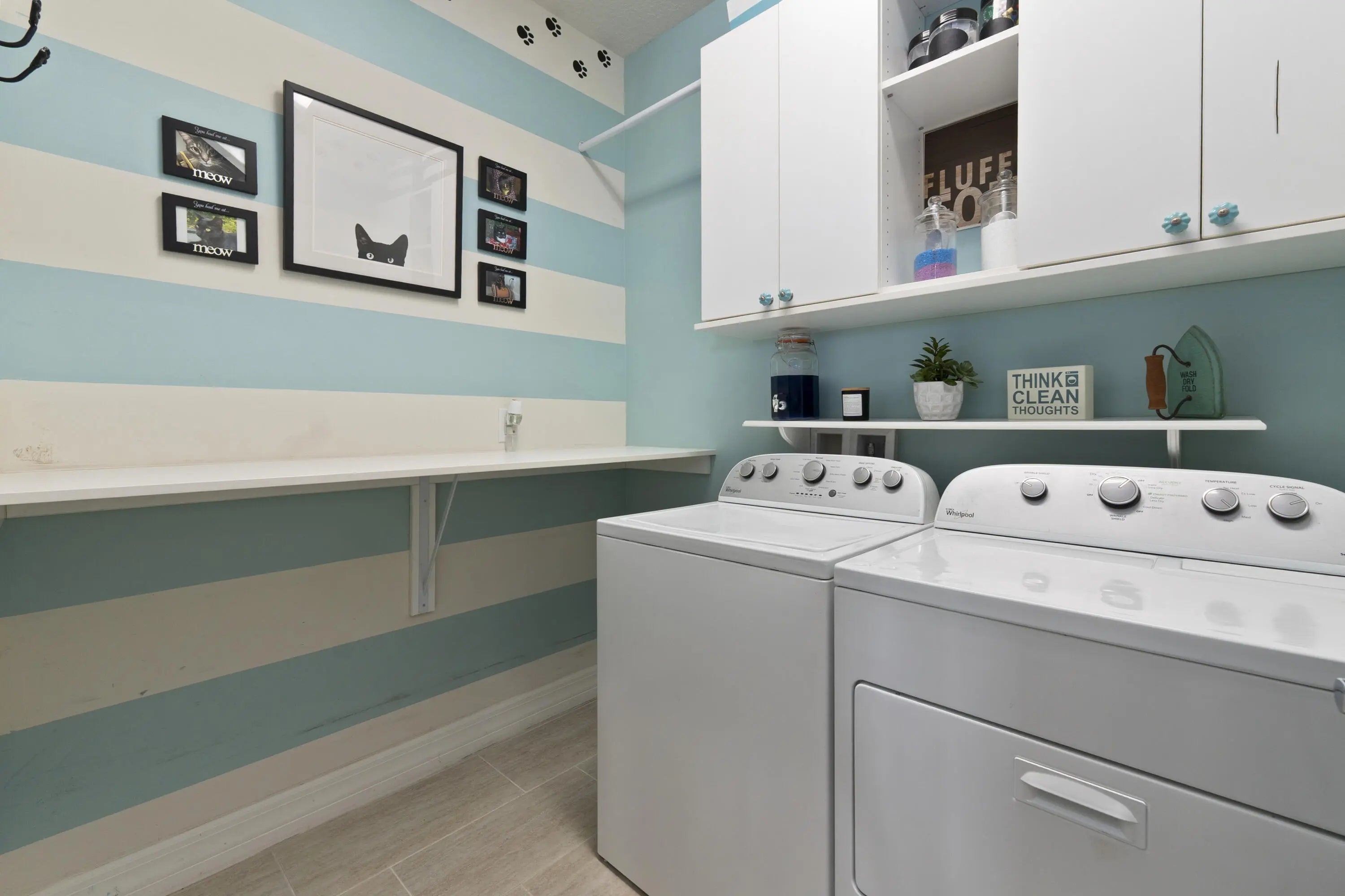 CBS 3Bed +Office 2Bath Extended 2 Car Garage, situated on corner lot long lake views. Screen Enclosed swimming pool with paver patio. Island Kitchen features 36'' Espresso cabinets with roll out trays, crown molding, Quartz counters, tile backsplash, Stainless Steel appliances, walk-in pantry has custom shelves, gas range, dry bar area with beverage cooler. Special features include, 16KW Generac whole house generator, high ceilings, Plantation shutters, custom ceiling fans, lighting & large title floors, stone accent wall in dining room & bench with shiplap in the drop zone by garage. Primary suite features wood look tile floors & tray ceilings. Walk-in closet has built-in custom cabinetry. Main bath has dual sinks & spacious tiled shower with massage jets. Comm Pool, Clubhouse, Tennis &