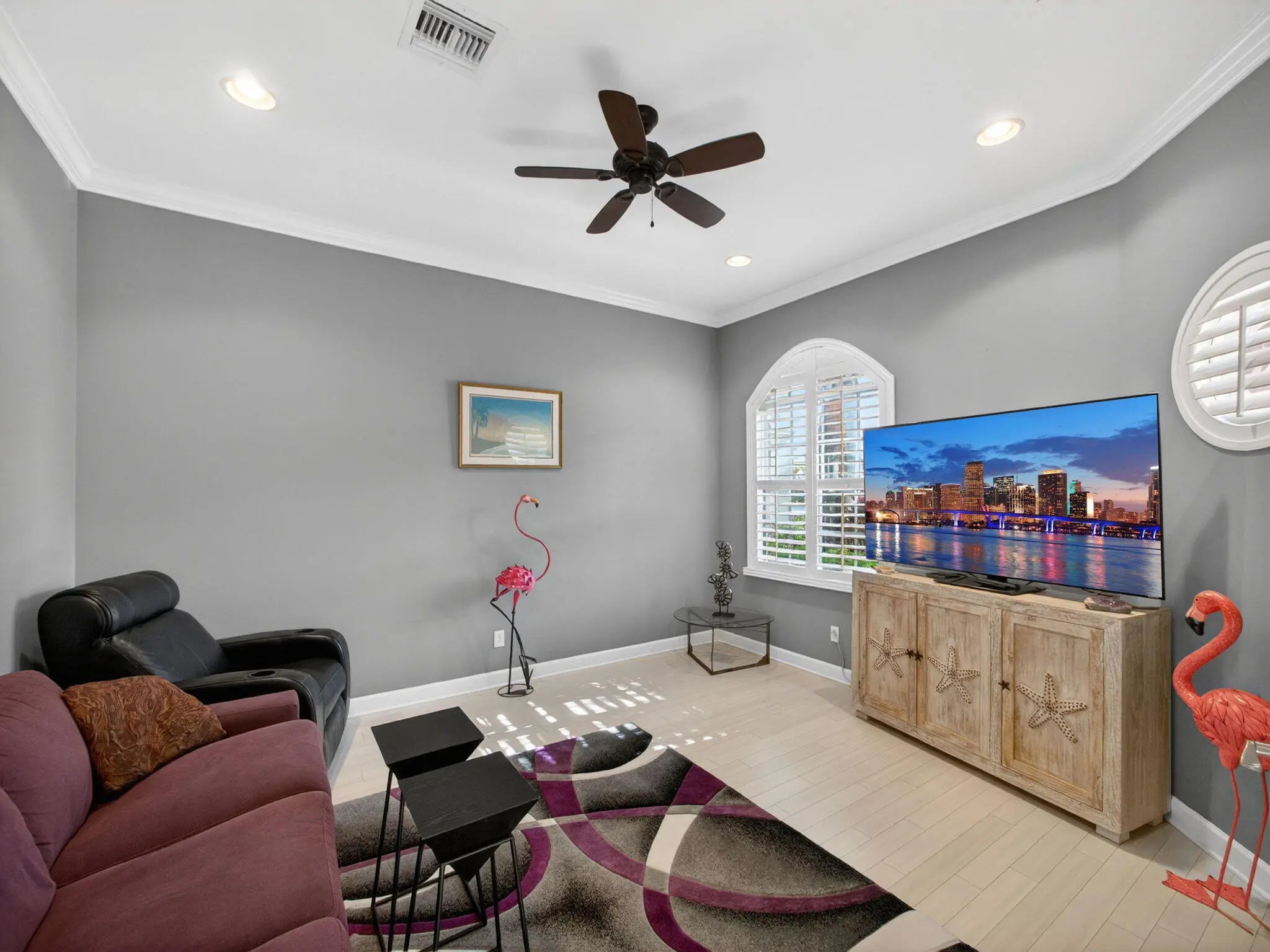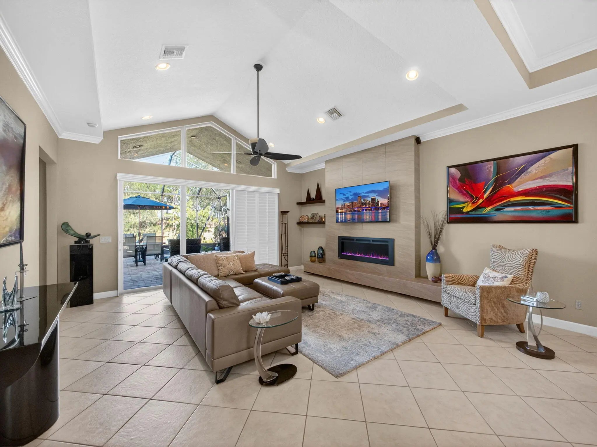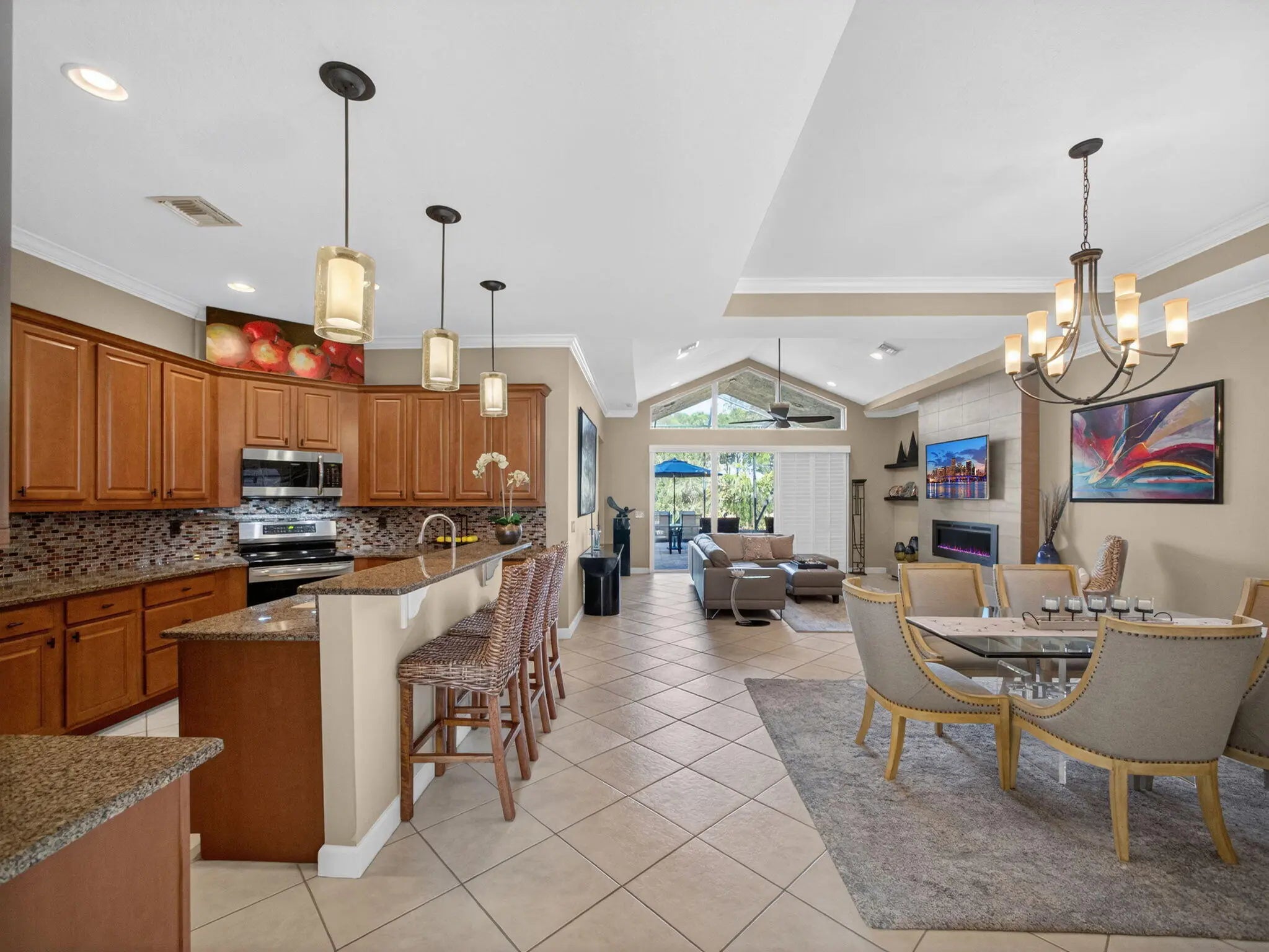 Welcome to Maidstone at PGA Village in St. Lucie--where comfort, style, and resort-style living come together in this beautifully appointed 2-bedroom + den, 2-bath residence. From the moment you arrive, the decorative glass front door with sidelight sets the tone for the elegance found throughout. Inside, you'll appreciate refined finishes including crown molding and plantation shutters throughout, along with a thoughtfully designed open layout ideal for both everyday living and entertaining. The kitchen is a true highlight, featuring Frigidaire Gallery appliances, a sleek induction cooktop, and stylish pendant lighting that enhances both functionality and ambiance. The open living and dining areas create a seamless flow, perfect for gatherings.